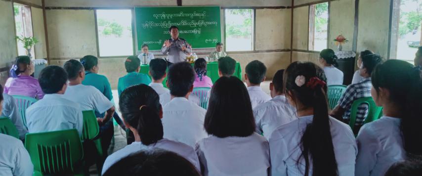 အဆိုပါ အသိပညာပေးဟောပြောပွဲတွင် မြို့နယ်ရဲတပ်ဖွဲ့မှူးယာယီရဲမှူးမြသောင်းမှ လူကုန်ကူးမှုတားဆီးကာကွယ်နိုင်ရေးအတွက် သိထားရမည့်အချက်များ၊ ကြိုတင်ကာကွယ်ရမည့်အချက်များ၊ ယနေ့ခေတ်တွင် Mobile Phone များဖြင့် ကာမလိမ်လည်မှုများ ဖြစ်ပွားနေမှုကြောင့် ကျောင်းသား/ကျောင်းသူများ ဖုန်းသုံးစွဲမှုလျော့ချရန်လိုကြောင်း၊ ကာမလိမ်လည်မှုနှင့်လူကုန်ကူးမှု ဥပဒေဆိုင်ရာများကို ရှင်းလင်းပြောကြားခဲ့သည်။
