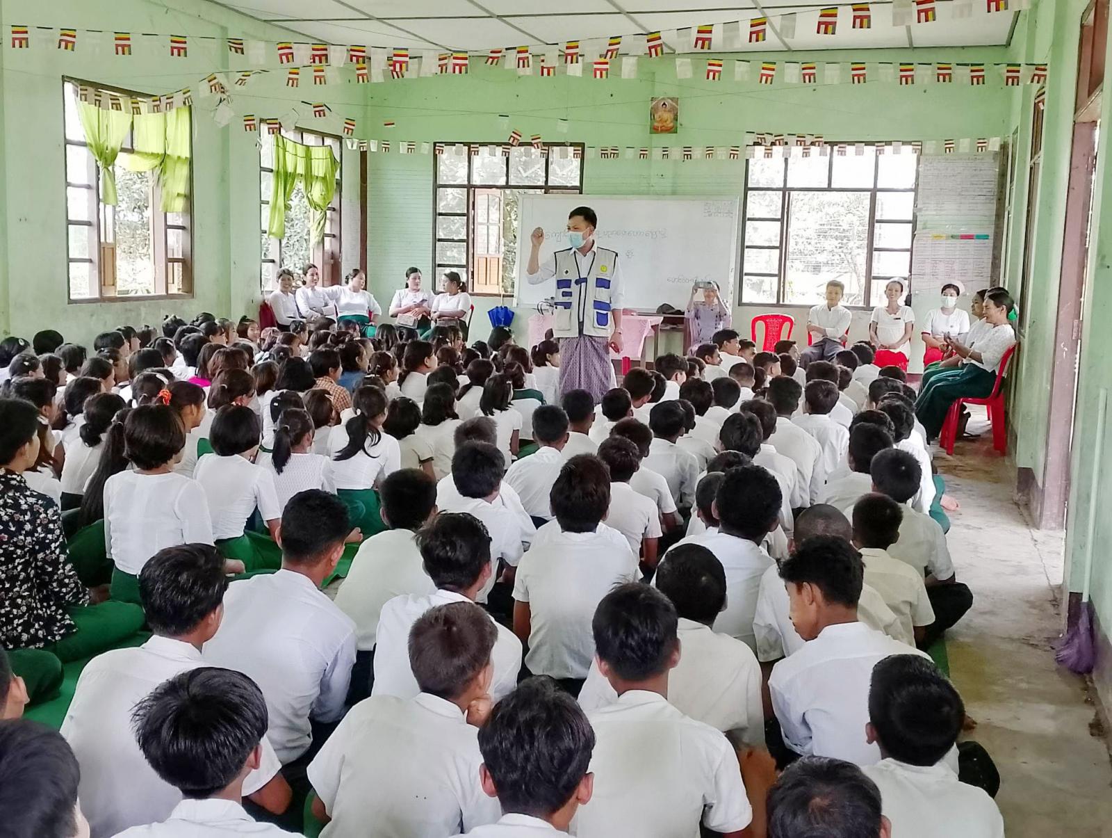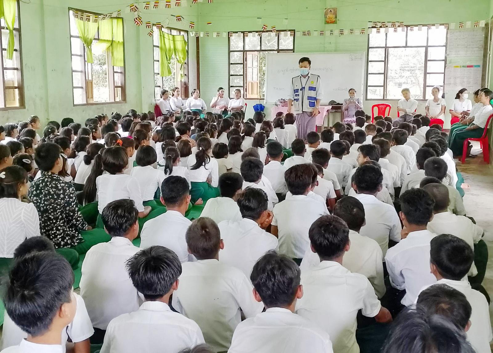 ရခိုင်ပြည်နယ်၊ မောင်တောမြို့၌ အမှတ်(၄) အခြေခံပညာအထက်တန်းကျောင်းတွင် မြို့သူကြီးကျေး လက် ကျန်းမာရေးဌာနမှ တာဝန်ရှိသူများက ယမန်နေ့ နံနက်ပိုင်းက ကျောင်းကျန်းမာရေးစစ်ဆေးခြင်း နှင့် အသိပညာပေး ဟောပြောခြင်းများကို ဆောင်ရွက်ခဲ့ကြသည်။