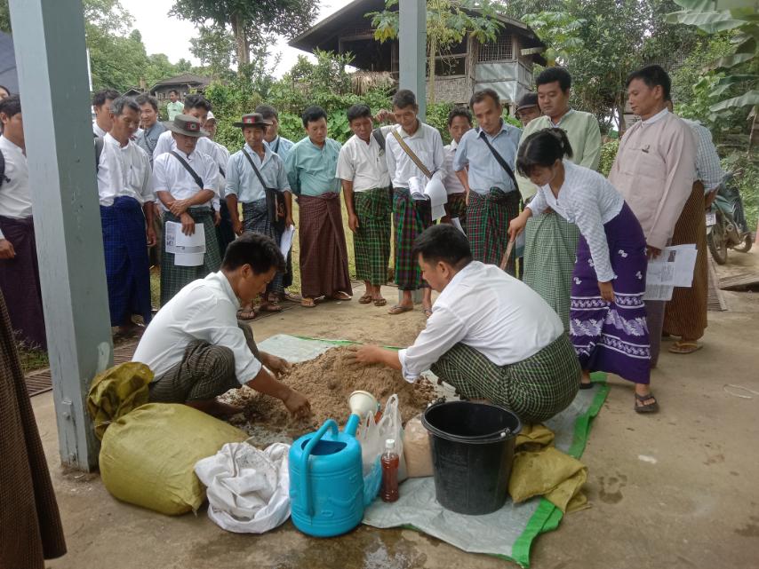 ပညာပေးဆွေးနွေးပွဲတွင် မြို့နယ်စိုက်ပျိုးရေးဦးစီးဌာန ဝန်ထမ်းများက တက်ရောက်လာ သူများဖြင့် စိုက်ပျိုးသီးနှံ ဖြစ်ထွန်းအောင်မြင်ရေးအတွက် ဓာတ်မြေသြဇာနှင့် သဘာဝမြေသြဇာ ကြဲပက်ပေးရမည့် အချိုးအဆများ၊ အချိန်ကာလများကိုအပြန်အလှန် မေးမြန်းဆွေးနွေးကြခြင်း၊ စပါယ်ရှယ်ဘိုကာရှီပြုလုပ်နည်း၊ ယူရီးယားစပါးခွံမြေဆွေးပြုလုပ်နည်း၊ EM ဘိုကာရှီမြေဆွေး ပုံပြုလုပ်နည်း နည်းပညာများ၊ ဒေသထွက်တိရစ္ဆာန်စွန့်ပစ်ပစ္စည်းများ၊ စပါခွံ၊ဖွဲနု၊ဖွဲကြမ်း၊ ကောက်ရိုး၊ နှမ်းဖတ်၊မုန်ညှင်းဖတ်၊ သစ်ရွက်ခြောက်များဖြင့် အီအမ်ဘိုကာရှီ မြေဆွေးပြု လုပ်နည်း များလက်တွေ့သရုပ်ပြခဲ့ပြီး တောင်သူများအနေဖြင့် ကိုယ်တိုင် အီအမ်ဘိုကာရှီမြေ ဆွေးပြုလုပ်မည်ဆိုပါက စိုက်ပျိုးရေးဦံးစီးဌာနမှ အီအမ်များ အခမဲ့ထောက်ပံ့ပေးအပ်ခြင်း၊ တောင်သူများအား အိမ်တိုင်ရာရောက် ကွင်းဆင်းပြီးနည်းပညာများ ကူညီထောက်ပံ့ပေး သွားမည်ဖြစ်ကြောင်းသိရှိရသည်။