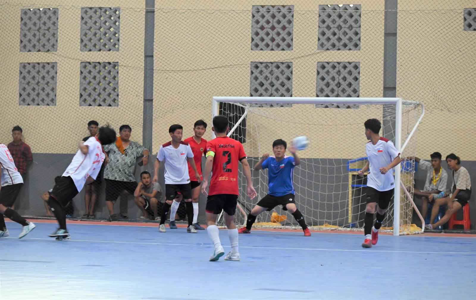 ကချင်ပြည်နယ်အားကစားနှင့် ကာယပညာဦးစီးဌာနနှင့် ပြည်နယ်ဖူဆယ်ဆပ်ကော်မတီတို့ ပူးပေါင်း စီစဉ်ကျင်းပသည့် Y.F.T (Youth Future Treasure) FC အသင်းမိတ်ဆက်ပွဲနှင့် ကလပ် ပေါင်းစုံ အမျိုးသားအလွတ်တန်း ဖူဆယ်ပြိုင်ပွဲကို ယမန်နေ့ နံနက် ၈ နာရီခွဲက မြစ်ကြီးနားမြို့ ငြိမ်းချမ်း သာယာ ဖူဆယ်အားကစားရုံ၌ ကျင်းပပြုလုပ်ရာ ပြည်နယ်ဝန်ကြီးချုပ် တက်ရောက်အားပေးသည်။
