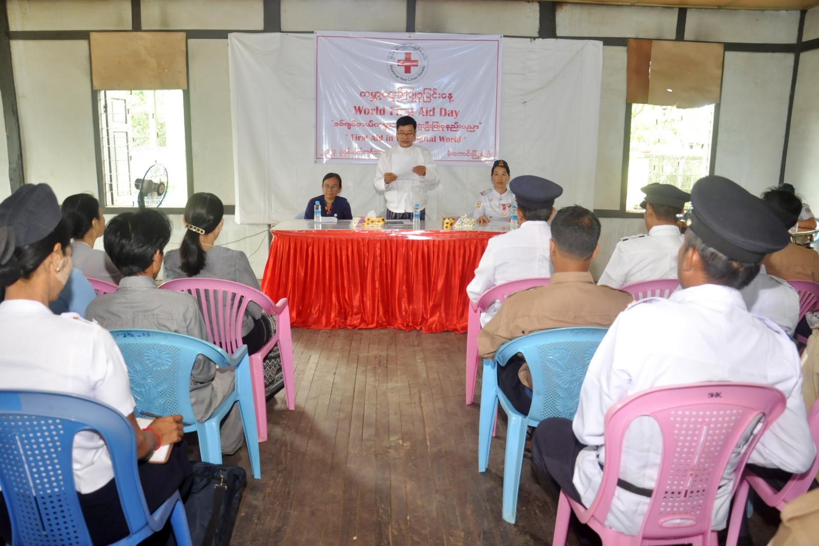 အခမ်းအနားတွင် မြန်မာနိုင်ငံကြက်ခြေနီအသင်းဥက္ကဋ္ဌ ပါမောက္ခ ဒေါက်တာမျိုးညွှန့်ထံမှ ပေးပို့သော ကမ္ဘာ့ကြက်ခြေနီ အထိမ်းအမှတ် သဝဏ်လွှာကို မြို့နယ်ကြက်ခြေနီအသင်းခွဲ ခေတ္တဥက္ကဋ္ဌ ဦးဝင်းနိုင် က ဖတ်ကြားပြီး အထိမ်းအမှတ်အခမ်းအနား ကျင်းပရခြင်းနှင့် ပတ်သက်၍ အမှုဆောင်အဖွဲ့ဝင် ဒေါ်မြင့်မြင့်တင်က ပြောကြားကာ မြို့နယ်ကြက်ခြေနီသူနာပြုတပ်ဖွဲ့ မြို့နယ်တပ်ဖွဲ့မှူး ဒေါ်ဆွေမာသင်းက မြို့နယ် ကြက်ခြေနီအသင်းခွဲရုံး၏ ရှေ့လုပ်ငန်းစဉ်များကို ရှင်းလင်းပြောကြား သည်။