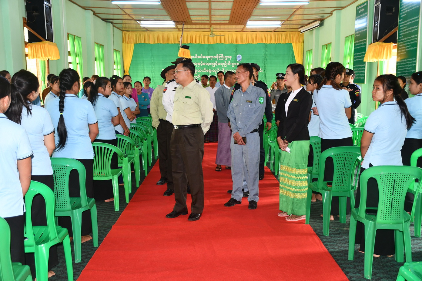 အခမ်းအနားတွင် ခရိုင်စီမံအုပ်ချုပ်ရေးအဖွဲ့ဥက္ကဋ္ဌ ဦးခင်မောင်လွင်က သင်တန်းသို့တက် ရောက်လာကြသည့် သင်တန်းသူများဖြစ်သည့် ပြည်ထောင်စုတိုင်းရင်းသူများသည် ပညာရှာမှီးရင်း တိုင်းရင်းသူအချင်းချင်း ပိုမိုစည်းလုံးချစ်ခင်လျက် ပြည်ထောင်စုစိတ်ဓာတ်ခိုင်မြဲသည့် တိုင်းရင်းသူလေးများ ဖြစ်လာစေရန်၊ နယ်စပ်ဒေသနှင့် ဆင်းရဲနွမ်းပါးသော ဒေသများရှိ အမျိုးသမီးငယ်များကို အိမ်တွင်းမှု သက်မွေးပညာများ သင်ကြားပေးရန်နှင့် သင်ကြားတတ်မြောက်သည့် အသက်မွေးဝမ်းကျောင်း ပညာရပ်များဖြင့် ကိုယ်ပိုင်စီးပွားရေးလုပ်ငန်း ထူထောင်နိုင်သည်အထိ ကူညီဆောင်ရွက်ပေးရန်၊ တိုင်းချစ်ပြည်ချစ်၊ အမျိုးချစ်စိတ် အစဉ်ရှင်သန် ထက်မြက်နေသည့် အမျိုးသမီးလေးများ ဖြစ်လာစေရန်၊ နိုင်ငံတော်က အိမ်တွင်းမှုပညာရပ်များကို နယ်စပ်ဒေသတွင်ရှိသည့် တိုင်းရင်းသူလေးများအတွက်သာမက လူဦးရေထူထပ်သည့် အတွင်းပိုင်းဒေသက အမျိုးသမီးလေးများ အသိပညာ၊ အတတ်ပညာများတိုးပွားစေရေး အလုပ်အကိုင် အခွင့်အလမ်းများ ရရှိစေရေးနှင့် ဆင်းရဲနွမ်းပါးမှု လျော့ချစေရေးစသည့် ရည်ရွယ်ချက်များဖြင့် အဆင့်မြင့် အိမ်တွင်းမှုစက်ချုပ်သင်တန်းကို ဖွင့်လှစ်ပေးခြင်းဖြစ်ကြောင်း အဖွင့်အမှာစကား ပြောကြားခဲ့သည်။