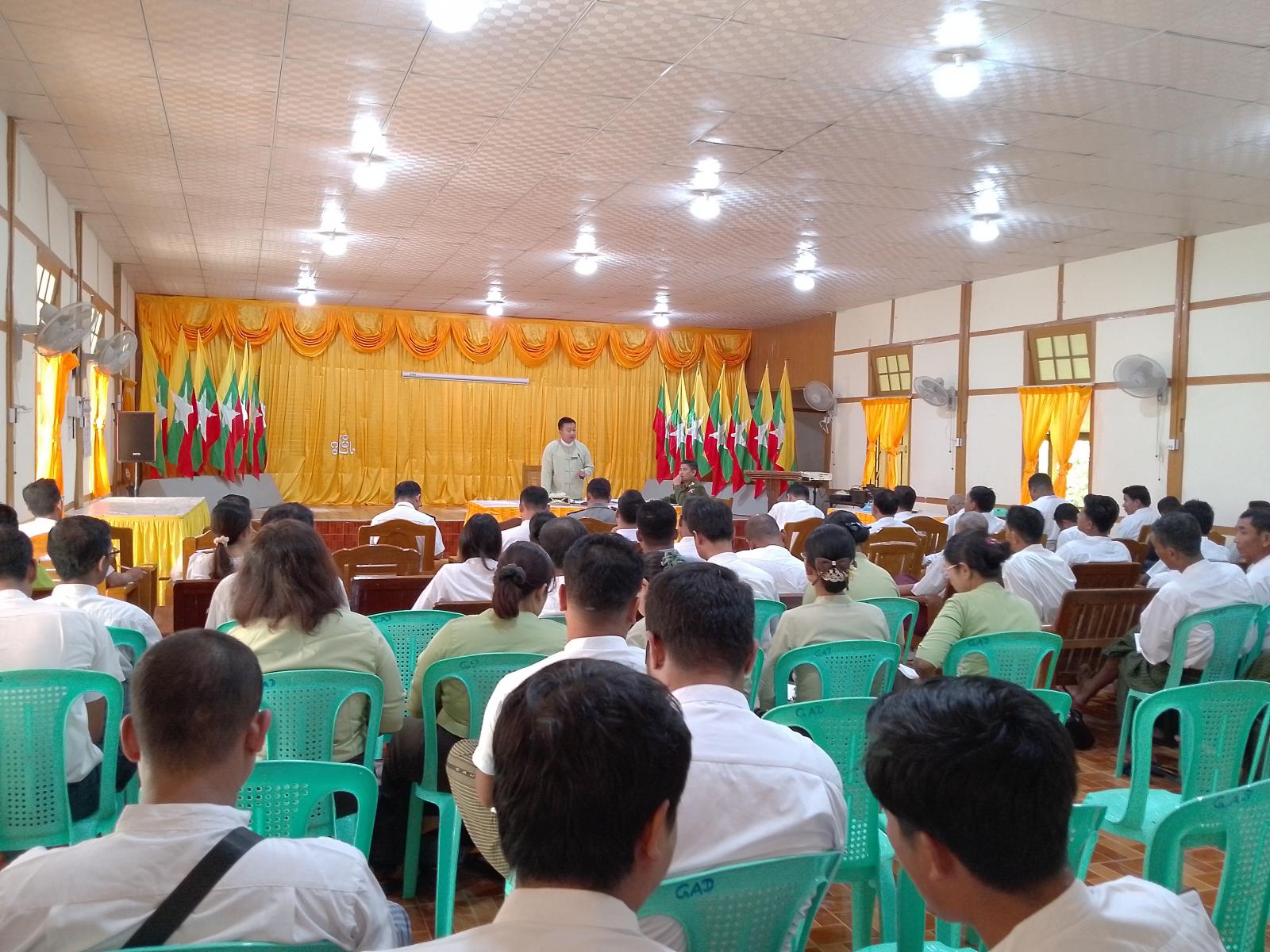 အစည်းအဝေးတွင် မြို့နယ်စီမံအုပ်ချုပ်ရေးအဖွဲ့ဥက္ကဋ္ဌဦးဇာနည်ကျော်က နိုဝင်ဘာလ(၁၅) ရက်နေ့တွင် ကျင်းပမည့် (၂၅)ကြိမ်မြောက် ဝန်ထမ်းပေါင်းစုံ ဘုံကထိန် အောင်မြင်စွာ ဖြစ်မြောက်ရေးအတွက် ဖွဲ့စည်းထားသည့် ကော်မတီများအလိုက် ဆောင်ရွက်ရမည့်လုပ်ငန်းများနှင့် အလှူငွေများ ထည့်ဝင်လှူဒါန်းကြရေး၊ မြို့နယ်တည်ဆောက်ရေး လုပ်ငန်းစီစစ်ရေးကော်မတီကို ခရိုင်စီမံအုပ်ချုပ်ရေးအဖွဲ့၏ ညွှန်ကြားချက်အရ ဖွဲ့စည်းထားရှိရာ ကျပ်သန်း(၅၀)အောက် ပြည်ထောင်စု၊ ပြည်နယ် ငွေလုံးငွေရင်းနှင့် ဆောင်ရွက်သည့် လုပ်ငန်းများနှင့်ပတ်သက်၍ လုပ်ငန်းတာဝန်များအား ဆောင်ရွက်နိုင်ရေး၊ ရပ်ကွက်/ကျေးရွာအုပ်ချုပ်ရေးမှူးများ အနေဖြင့် ကျေးလက်နေ ပြည်သူများနှင့် တိုင်းရင်းသားပြည်သူများအား စာတတ်မြောက်ရေး အကောင် အထည်ဖော် ဆောင်ရွက်ရာတွင် ပညာရေးဌာနမှ စီမံချက်ရေးဆွဲထားသည့်အတိုင်း ကျေးရွာများတွင် စာမတတ်သည့်သက်ကြီးပိုင်းများ၏ စာရင်းအား ပြုစုထားရှိရေးတို့ကို ဆွေးနွေးပြောကြားခဲ့သည်။ ဆက်လက်၍ မြို့နယ်စီမံအုပ်ချုပ်ရေးအဖွဲ့၊ အဖွဲ့ဝင်(၁) ဗိုလ်မှူးသန့်ဇင်အောင်နှင့် ရဲမှူး ခင်မောင်ထွန်းတို့က မြို့၊ရွာ လုံခြုံရေး အကြောင်း ဆွေးနွေးပြောကြား ခဲ့သည်။