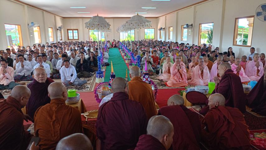 ထို့နောက် တောင်တန်းသာသနာပြုဗဟိုကျောင်း(ပူတာအို)ဆရာတော် မဟာသဒ္ဓမ္မဇောတိကဓဇ ဘဒ္ဒန္တဝိဇာရဥာဏဟောကြားတော်မူသော အနုမောဒနာတရားနှင့် လှူဒါန်းမှုအစုစုတို့အတွက် ရေစက်သွန်းချအမျှပေးတရားကို အတူတကွနာယူခဲ့ကြပြီး ဗုဒ္ဓသာသနံစိရံတိဌတုသုံးကြိမ်ရွတ်ဆိုကာ အခမ်းအနားကိုရုပ်သိမ်းခဲ့ကြောင်း သိရသည်။