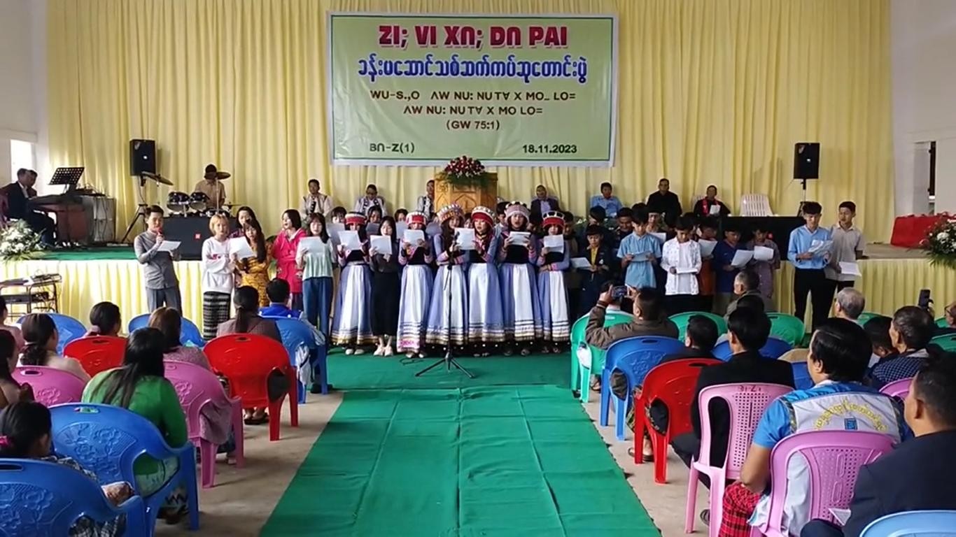 ထို့နောက် တာဝန်ရှိသူများ ဦးဆောင်၍ ဘုရားဝတ်ပြုအစီအစဉ်အဖြစ် သိက္ခာတော်ရ ဆရာမတ်ခူးမှ ခရစ်တော်ထံ ဆက်ကပ်ဆုတောင်း၍ တက်ရောက်လာသူများက ဓမ္မတေးသီချင်းသီဆိုကြပြီး သိက္ခာတော်ရဆရာ တီးတိုးမှ ဒေသနာတော်အား ဟောကြားတော်မူကာ တာဝန်ရှိသူ များက ခန်းမဆောင် ဖြစ်မြောက်ရေးတွင် ပူးပေါင်းကူညီဆောင်ရွက်ကြသူများအား အမှတ်တရလက်ဆောင်များ ပေးအပ်ခဲ့ကြသည်။
