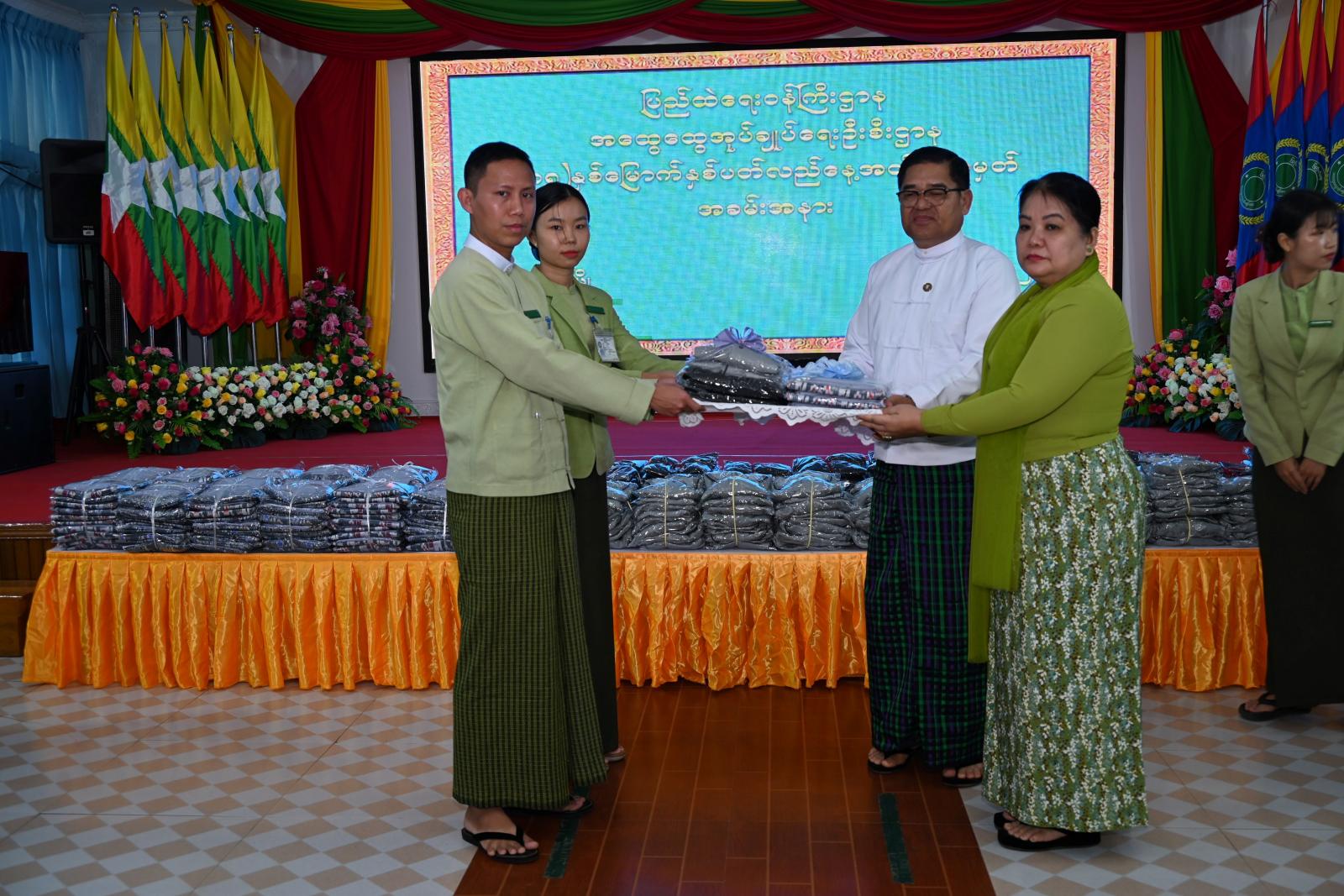 ထို့နောက် ပြည်နယ်ဝန်ကြီးချုပ်နှင့် ဇနီးဒေါ်နန်ဆိုင်းတို့က ပြည်နယ်အထွေထွေအုပ်ချုပ်ရေးဦးစီး ဌာနမှ ဝန်ထမ်း (၂၆၅)ဦးနှင့် မိသားစုစည်းကမ်းထိန်းသိမ်းရေးကော်မတီအဖွဲ့ဝင် (၂၀)ဦးတို့အတွက် ငွေကျပ်စုစုပေါင်း (၁၂၈၂၅၀၀၀)ကျပ်တန်ဖိုးရှိ ဝတ်စုံများကိုလည်းကောင်း၊ ပြည်နယ်ဝန်ကြီးများနှင့် ပြည်နယ်အစိုးရအဖွဲ့အတွင်းရေးမှူး၊ ပြည်နယ်အုပ်ချုပ်ရေးမှူးတို့က ဝန်ထမ်းသားသမီး တက္ကသိုလ်ဝင် တန်းအောင်သူများ၊ ငွေစာရင်းထိန်းသိမ်းရေးနည်းလမ်းနှင့် ဘဏ္ဍာငွေအရ/အသုံးဆိုင်ရာစာရင်းများ(ရသစ -၆)ပြုစုရေးဆွဲနည်း(ရက်တို)သင်တန်းတွင် ထူးချွန်ဆုရ ဝန်ထမ်းများ၊ အကြိမ်(၂၀)နှင့်အထက် သွေးလှူ ဒါန်းသူ(၂)ဦးနှင့် သွေးလှူဒါန်းသူများ၊ နိုင်ငံ့ဝန်ထမ်းတက္ကသိုလ် (အထက်မြန်မာပြည်) သင်တန်းတွင် ထူးချွန်ဆုရဝန်ထမ်းများအား ဂုဏ်ပြုချီးမြှင့်ငွေ၊ ဂုဏ်ပြုမှတ်တမ်းလွှာများကိုလည်းကောင်း၊ အငြိမ်းစား ဝန်ထမ်းဟောင်းကြီးများအား ဂုဏ်ပြုလက်ဆောင်များကိုလည်းကောင်း အသီးသီးဂုဏ်ပြု ချီးမြှင့်ပေးအပ် ခဲ့ကြရာ အငြိမ်းစား ဝန်ထမ်းဟောင်းတစ်ဦးက ကျေးဇူးတင်စကားပြန်လည်ပြောကြားသည်။