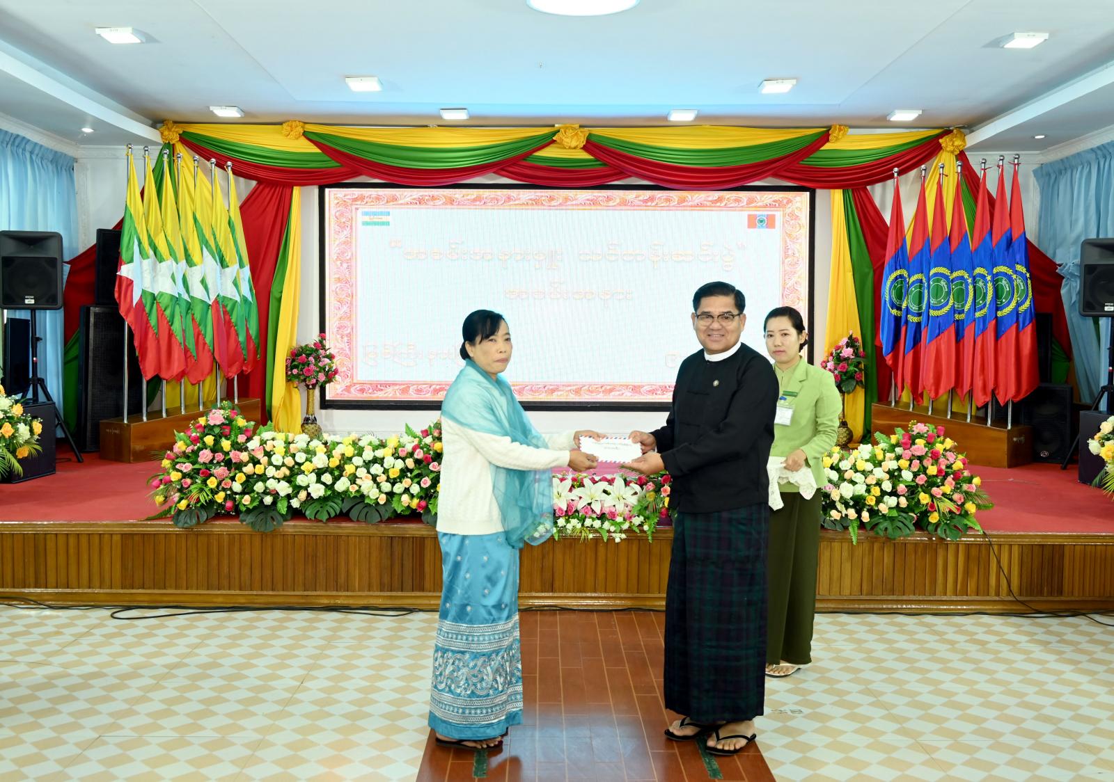 ထို့နောက် သင်တန်းနည်းပြ ပြည်နယ်ပြန်ကြားရေးနှင့်ပြည်သူ့ဆက်ဆံရေးဦးစီးဌာန၊ ဒုတိယညွှန်ကြားရေးမှူး ဒေါ်ငုချိုချိုကျော်က သင်တန်းဖွင့်လှစ်သင်ကြားပေးရခြင်း၏ ရည်ရွယ်ချက်များနှင့် သင်တန်းဖွင့်လှစ်သင်ကြားခဲ့မှုအခြေအနေများကို ရှင်းလင်းတင်ပြပြီး ပြည်နယ်ဝန်ကြီးချုပ်က သင်တန်းနည်းပြအတွက် ဂုဏ်ပြုချီးမြှင့်ငွေများ ပေးအပ်ချီးမြှင့်ခဲ့သည်။