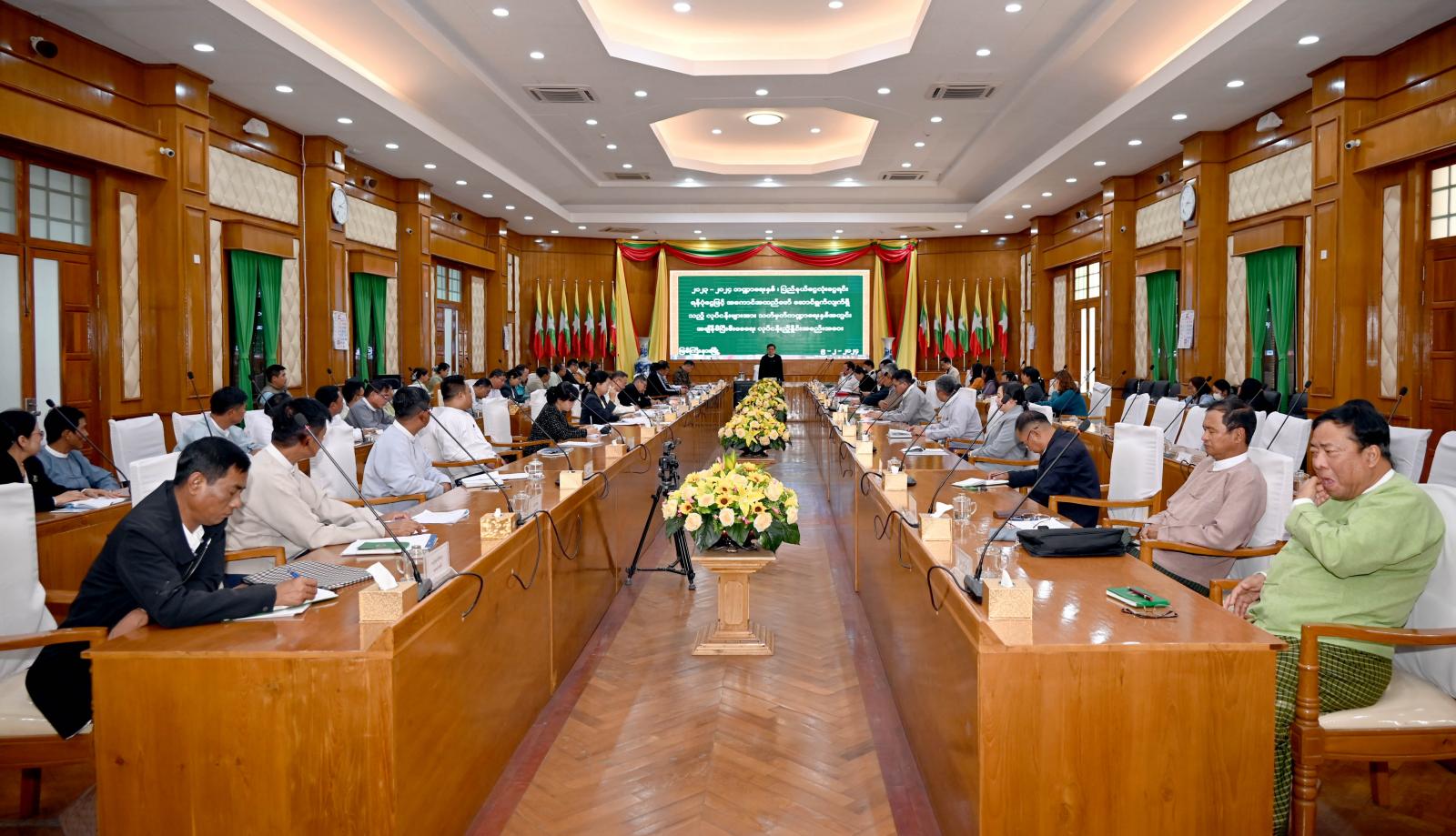 ယင်းနောက် မွန်းလွဲပိုင်းတွင် ပြည်နယ်အစိုးရအဖွဲ့ရုံး မလိခခန်းမ၌ ၂၀၂၃-၂၀၂၄ ဘဏ္ဍာရေးနှစ်၊ ပြည်နယ်ငွေလုံးငွေရင်းရန်ပုံငွေဖြင့် အကောင်အထည်ဖော်ဆောင်ရွက်လျက်ရှိသည့် လုပ်ငန်းများအား သတ်မှတ်ဘဏ္ဍာရေးနှစ်အတွင်း အချိန်မီပြီးစီးရေးအတွက် သက်ဆိုင်ရာဌာနများ၊ ကုမ္ပဏီလုပ်ငန်းရှင်များနှင့် လုပ်ငန်းညှိနှိုင်းအစည်းအဝေးကို ကျင်းပပြုလုပ်သည်။