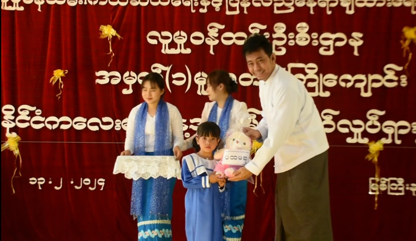 ထို့နောက် ရင်သွေးငယ်ကျောင်းသား/သူလေးများက အကပဒေသာများဖြင့် ဖျော်ဖြေတင်ဆက်ကပြကြရာ တက်ရောက်လာသူများက အားပေးကြည့်ရှုခဲ့ပြီး ဆုချီးမြှင့်ခြင်း အခမ်းအနားကို ကျင်းပပြုလုပ်ရာ ပြည်နယ်လူမှုဝန်ထမ်းဦးစီးဌာနမှူး ညွှန်ကြားရေးမှူးနှင့် တာဝန်ရှိသူများက ပြိုင်ပွဲအမျိုးအစားအလိုက် ဆုရရင်သွေးငယ်များအား အမှတ်တရဆုလက်ဆောင်များ ပေးအပ်ချီးမြှင့်ကာ မြန်မာနိုင်ငံအမျိုးသမီးများနှင့် ကလေးသူငယ်များ ဘဝမြှင့်တင်ရေးအသင်းဥက္ကဋ္ဌ ဒေါ်ခင်လေးမေက မူလတန်းကြိုကျောင်းများအတွက် သင်ထောက်ကူပစ္စည်းများ ထောက်ပံ့ပေးအပ်ရာ မူလတန်းကြိုကျောင်းအလိုက် တာဝန်ရှိသူများက လက်ခံရယူ ခဲ့ကြောင်းနှင့် မြန်မာနိုင်ငံကလေးများနေ့အထိမ်းအမှတ် ပျော်ပွဲရွှင်ပွဲနှင့် ပြိုင်ပွဲများတွင် ရင်သွေးငယ် (၈၁) ဦး ပါဝင်ယှဉ်ပြိုင်ခဲ့ပြီး အခမ်းအနားသို့ မြစ်ကြီးနားမြို့ပေါ်ရှိ မူလတန်းကြိုကျောင်းများမှ ကျောင်းအုပ်များ၊ ဆရာမများနှင့် ရင်သွေးငယ်များ၊ ဖိတ်ကြားထားသူများ တက်ရောက်ကြောင်း သတင်းရရှိသည်။