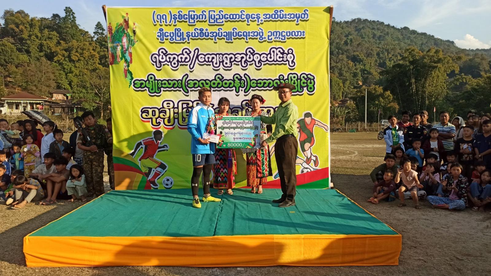 ဆက်လက်၍ ဆုပေးပွဲအခမ်းအနားတွင် မြို့နယ်ပြည်သူ့ကျန်းမာရေးဦးစီးဌာနမှ ဒေါက်တာ စိုးမြင့်အောင်က အကောင်းဆုံးဂိုးသမားဆု၊ နောက်တန်းအကောင်းဆုံးဆုရရှိသည့် အားကစားသမားများအား လည်းကောင်း၊ မြို့နယ်ပညာရေးမှူးဦးကြည်နွယ် က အလယ်တန်း အကောင်းဆုံးနှင့် ရှေ့တန်းအကောင်းဆုံးဆုရရှိကြသည့် အားကစားသမားများ တစ်ချင်းစီးအား ဆုတံဆိပ်နှင့် ဂုဏ်ပြုငွေ (၅) သောင်းစီ ပေးအပ်ချီးမြှင့်ခဲ့ပြီး မြို့နယ်စီမံအုပ်ချုပ်ရေးအဖွဲ့ဥက္ကဌ ချစ်စမ်းအောင်က ပွဲစဉ်တစ်လျှောက် အကောင်းဆုံး အားကစားသမားဆုအား ရရှိကြသည့် အားကစားသမားအား ဆုတံဆိပ်နှင့် ဂုဏ်ပြုငွေ (၈)သောင်းပေးအပ်ချီးမြှင့်ခဲ့ကြသည်။