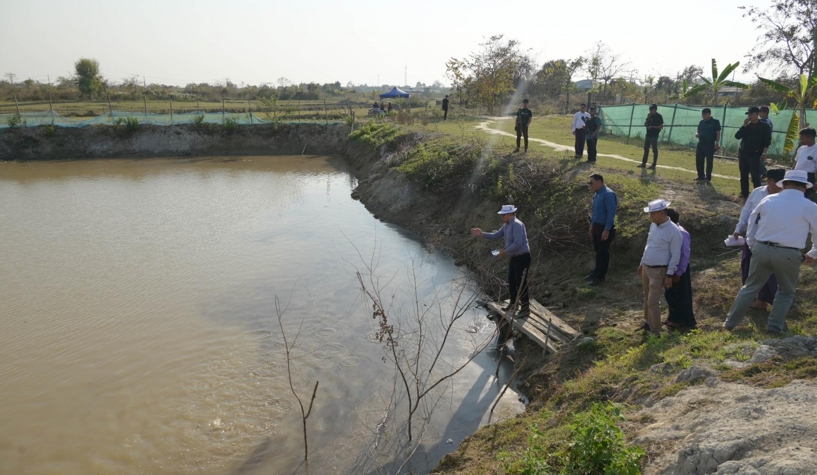 ယင်းနောက် ကွင်းအမှတ် (၇၄)အတွင်း နှစ်စဉ် လယ်မြေများ ရေဝပ်တင်ကျန်မှုကြောင့် လယ်သီးနှံစိုက်ပျိုးမှု နည်းပါးသည့် ရေဝပ်ဧရိယာဧက (၇၀)အတွင်း ရေများတင်ကျန်မှု မရှိစေရေးနှင့် ငါးကန်များရေကျော်မှုမဖြစ်ပေါ်စေရေး အဆိုပါဧရိယာမှ နန်းကွေ့ချောင်းအထိ အရှည်ပေ ၃၃၅၀ ရှိသည့် ရေထုတ်မြောင်းအား ပြည်နယ်ဆည်မြောင်းနှင့် ရေအသုံးချမှုစီမံခန့်ခွဲရေးဦးစီးဌာနက ရေစီးရေလာကောင်းမွန်ရေးနှင့် အဆင့်မြှင့်တင်ဆောင်ရွက်နိုင်ရေးအတွက် မြေပြင်ကွင်းဆင်းစစ်ဆေးဆောင်ရွက်ခဲ့မှုများနှင့်စပ်လျဉ်း၍ ရှင်းလင်းတင်ပြမှုအပေါ် အမြန်ဆုံးဆောင်ရွက်နိုင်ရေးနှင့် ရေဝပ်လယ်မြေများတွင် မိုးစပါးဧရိယာ တိုးချဲ့စိုက်ပျိုးနိုင်ရေးအတွက် လှည့်လည်ကြည့်ရှုစစ်ဆေးခဲ့ကြပြီး တောင်သူ ဦးဝရမ်းခေါင်ဒီး၏ ငါးကန်များအား လှည့်လည်ကြည့်ရှုစစ်ဆေးခဲ့ကြကြောင်း သိရသည်။