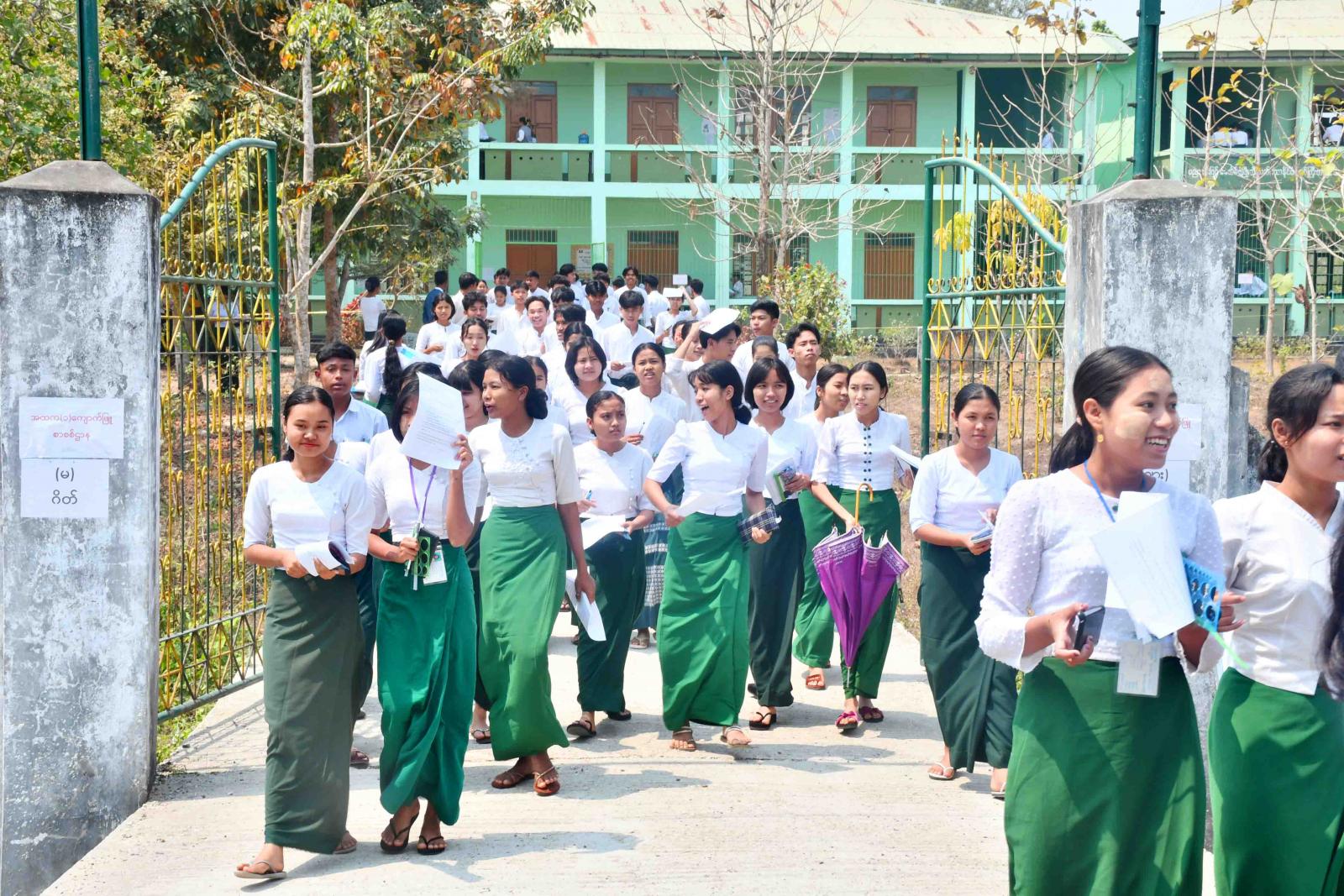 ၂၀၂၃-၂၀၂၄ ပညာသင်နှစ် တက္ကသိုလ်ဝင်စာမေးပွဲကို မတ်လ ၁၁ ရက်နေ့မှ စတင်ကျင်းပလျက်ရှိရာ တိုင်းဒေသကြီးနှင့် ပြည်နယ်အသီးသီးရှိ အခြေခံပညာအထက်တန်းကျောင်းများရှိ စာစစ်ဌာနအသီးသီးတွင် ကျောင်းသား၊ ကျောင်းသူများသည် တတိယနေ့ သင်္ချာဘာသာရပ်ကို စတင်ဖြေဆိုလျက်ရှိသည်။