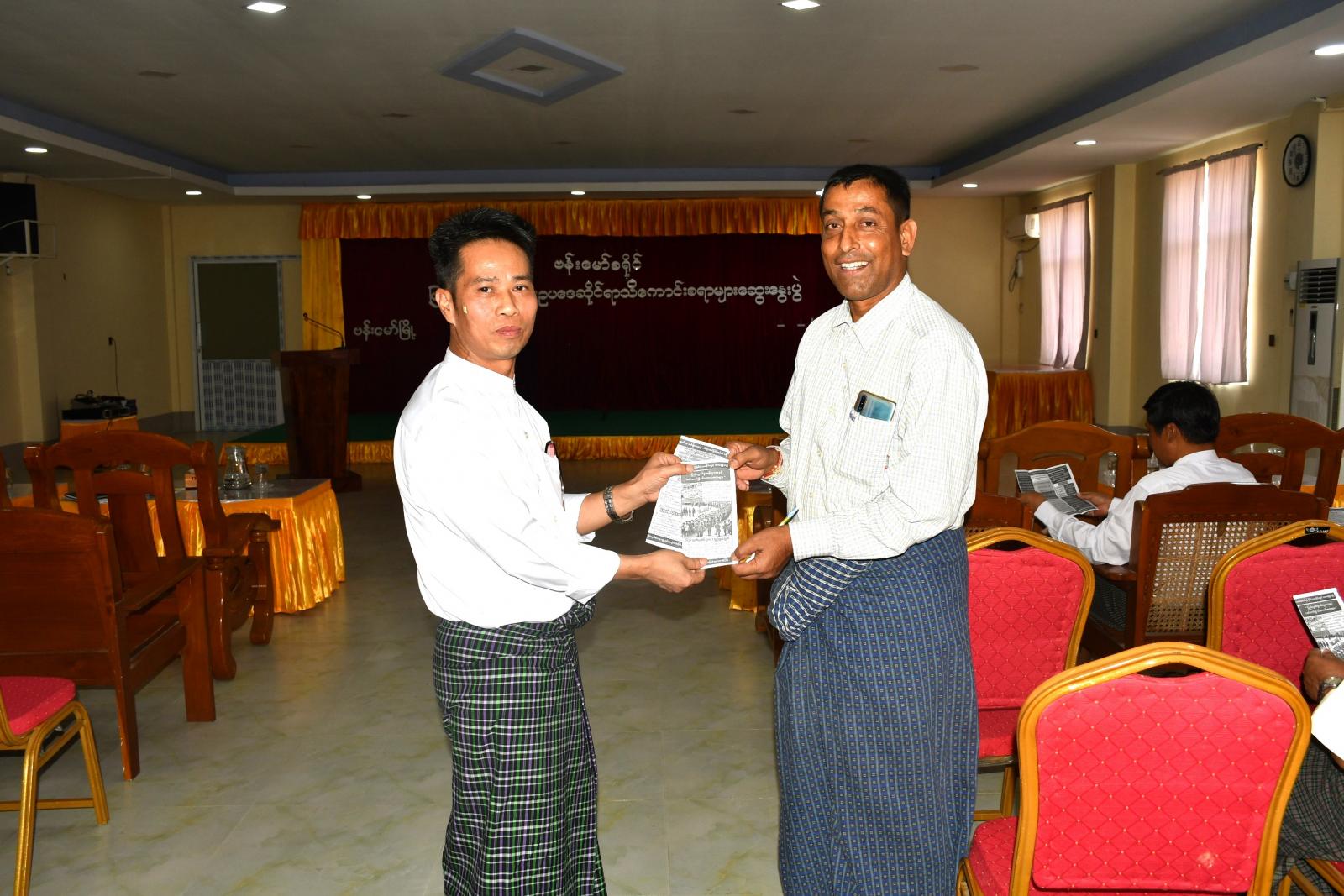 ကချင်ပြည်နယ်၊ ဗန်းမော်ခရိုင်တွင် ပြည်သူ့စစ်မှုထမ်းဥပဒေဆိုင်ရာများနှင့် စပ်လျဉ်း၍ သိရှိနားလည်နိုင်စေရန်နှင့် ပူးပေါင်းပါဝင်ဆောင်ရွက်နိုင်ရန်ရည်ရွယ်၍ ပြည်သူ့စစ်မှုထမ်းဥပဒေဆိုင်ရာ သိကောင်းစရာများ အသိပညာပေးဆွေးနွေးပွဲကို ယမန်နေ့ မွန်းလွှဲ ၂ နာရီခန့်က ခရိုင်အထွေထွေအုပ်ချုပ်ရေးဦးစီးဌာန အစည်းအဝေးခန်းမတွင် ဆောင်ရွက်ခဲ့ကြောင်း သိရသည်။
