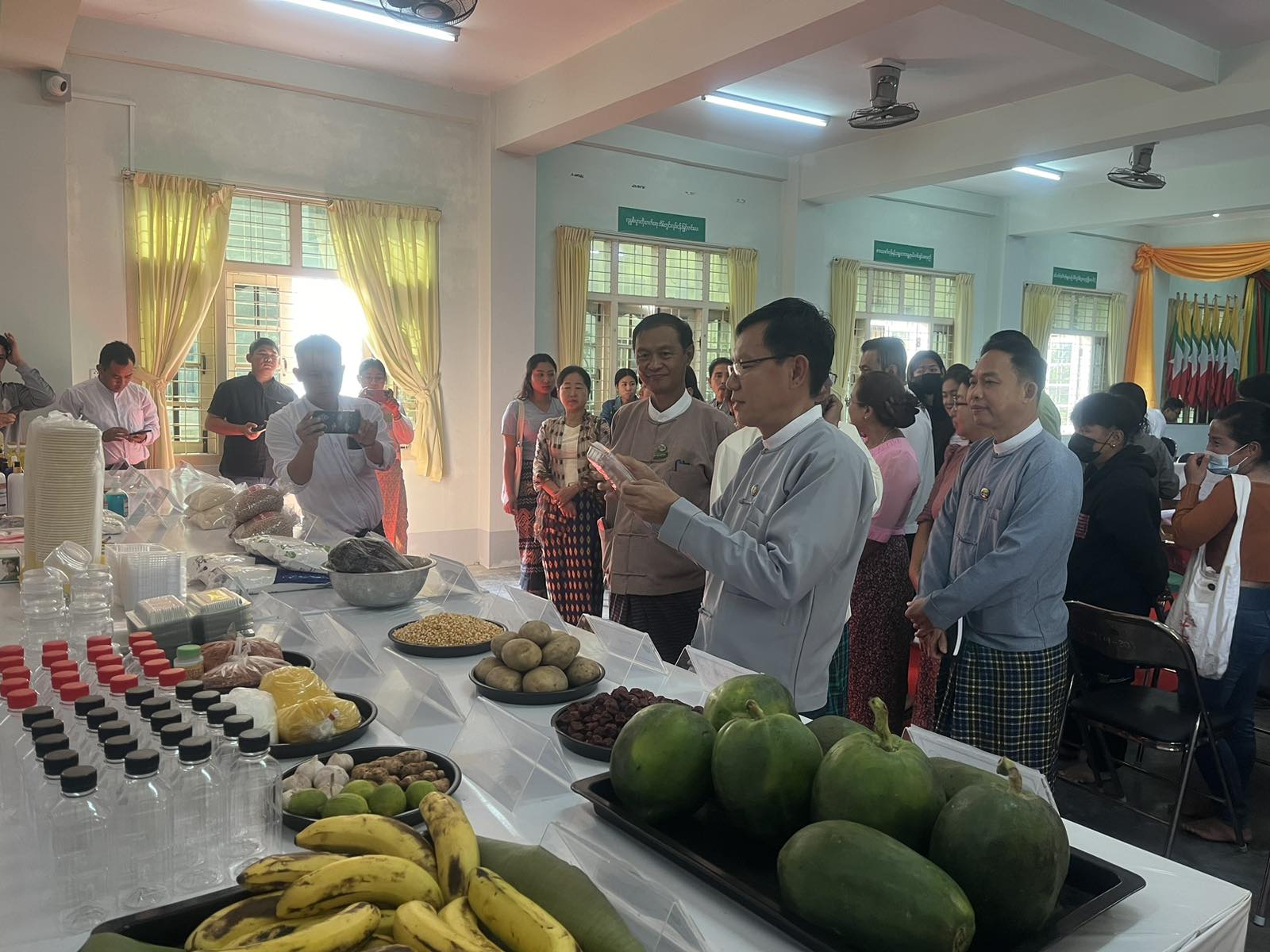 ထို့နောက် ပြည်နယ်ဝန်ကြီးနှင့် တာဝန်ရှိသူများက သင်တန်းသင်ကြားသွားမည့် သီးနှံကုန်ကြမ်းများ စုစောင်းထားရှိမှု၊ ဦးစီးဌာနမှ ဖွင့်လှစ်ခဲ့သည့် သင်တန်းများမှ တန်ဖိုးမြှင့်စားသောက်ကုန် ချောများကို ထုတ်လုပ်၊ ထုပ်ပိုးထားရှိမှုများကို လှည့်လည်ကြည့်ရှုအားပေးခဲ့ကြသည်။