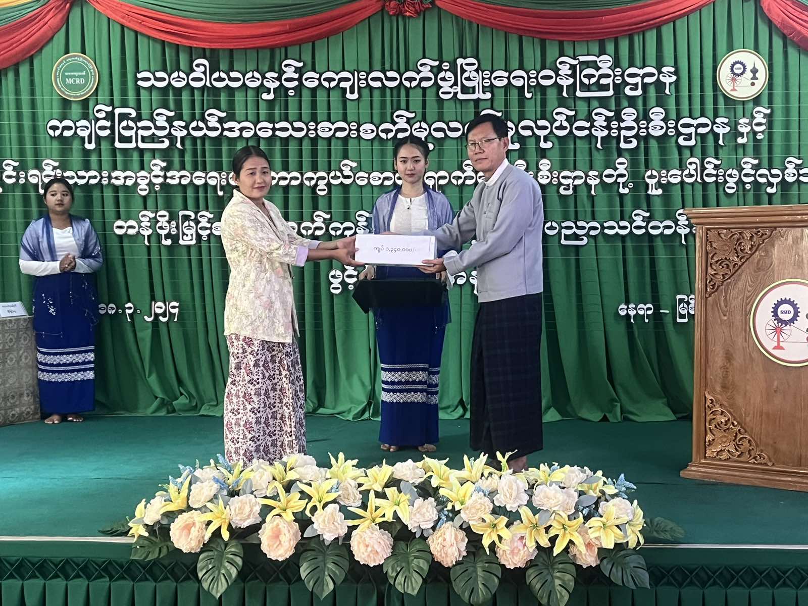 ဆက်လက်၍ ပြည်နယ်ဝန်ကြီးက (၅)ရက်ကြာဖွင့်လှစ်သွားမည့် သင်တန်းအတွက် ထောက်ပံ့ငွေကျပ် ၁၃၄၀၀၀၀ ကို ထောက်ပံ့ပေးအပ်ပြီး ပြည်နယ်အသေးစားစက်မှုလက်မှုလုပ်ငန်းဦးစီးဌာန၊ ပြည်နယ်ဦးစီးမှူး ဦးမောင်မောင်စိုးက သင်တန်းသားအတွက် သင်ထောက်ကူပစ္စည်းများကို လည်းကောင်း၊ တိုင်းရင်းသားအခွင့်အရေးများကာကွယ်စောင့်ရှောက်ရေးဦးစီးဌာန၊ ညွှန်ကြားရေးမှူး ဦးရန်နိုင်လွင်က လုပ်ငန်းသုံးပစ္စည်းများကို လည်းကောင်း၊ ပြည်နယ်လူမှုဝန်ထမ်းဦးစီးဌာန ညွှန်ကြားရေးမှူး ဦးသန်းအောင်က တန်ဖိုးမြှင့်စားသောက်ကုန်ထုတ်လုပ်နိုင်ရေး သင်တန်းသုံးကုန် ကြမ်းသီးနှံများကို အသီးသီးပေးအပ်ခဲ့ကြသည်။