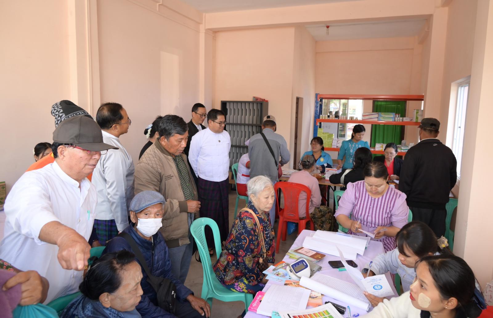 နိုင်ငံတော်အနေဖြင့် နိုင်ငံ့တာဝန်ကို ကျေပွန်စွာထမ်းဆောင်ခဲ့ကြပြီး ဌာနဆိုင်ရာနယ်ပယ် အသီးသီးမှ အငြိမ်းစားယူသွားခဲ့ကြသည့် နိုင်ငံ့ဝန်ထမ်းအငြိမ်းစားကြီးများအား ငွေကြေးကုန်ကျ စိုက်ထုတ်ရမှုလျော့နည်းစေ၍ လက်လှမ်းမီသော ကျန်းမာရေးစောင့်ရှောက်မှုရရှိစေပြီး ကျန်းမာပျော်ရွှင်စွာ နေထိုင်နိုင်ရေးအတွက် စီစဉ်ပေးလျက်ရှိရာ ကချင်ပြည်နယ်အစိုးရအဖွဲ့က ဦးဆောင်၍ မတ် ၂၁ ရက် နံနက် ၆ နာရီခွဲမှ စတင်ကာ အငြိမ်းစားလစာထုတ်ယူခြင်းနှင့် ကျန်းမာရေးစောင့်ရှောက်မှုလုပ်ငန်းများကို မြစ်ကြီးနားမြို့ ကုတင် ၅၀၀ ဆံ့ပြည်သူ့ဆေးရုံ၌ ဆောင်ရွက်ပေးခဲ့ကြသည်။