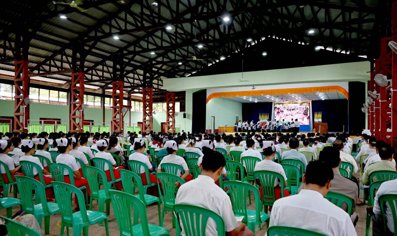 ကချင်ပြည်နယ် စာကြည့်တိုက်များ ဖွံ့ဖြိုးတိုးတက်ရေးနှင့် စာဖတ်ရှိန်မြှင့်တင်ရေးလှုပ်ရှားမှု အခမ်း အနားကို ယမန်နေ့ နံနက် ၉ နာရီက မြစ်ကြီးနားမြို့ ပြည်နယ်သူ့အားကစားကွင်းအတွင်း မိုးလုံ လေလုံအားကစားခန်း၌ ကျင်းပပြုလုပ်ရာ ပြည်နယ်ဝန်ကြီးချုပ် ဦးခက်ထိန်နန်၊ ပြည်နယ်တရား လွှတ်တော်တရားသူကြီးချုပ်၊ ပြည်နယ်အစိုးရအဖွဲ့ဝင် ဝန်ကြီးများနှင့် ၎င်းတို့၏ ဇနီးများ၊ ဌာနဆိုင်ရာ များနှင့် အရပ်ဘက်အဖွဲ့အစည်းအသီးသီးမှ တာဝန်ရှိသူများ၊ ပညာရေးဒီဂရီကောလိပ်၊ သူနာပြု/ သားဖွားသင်တန်းကျောင်းများမှ သင်တန်းသား/သင်တန်းသူများ၊ အခြေခံပညာ ကျောင်းသား/ ကျောင်းသူများ တက်ရောက်ကြသည်။