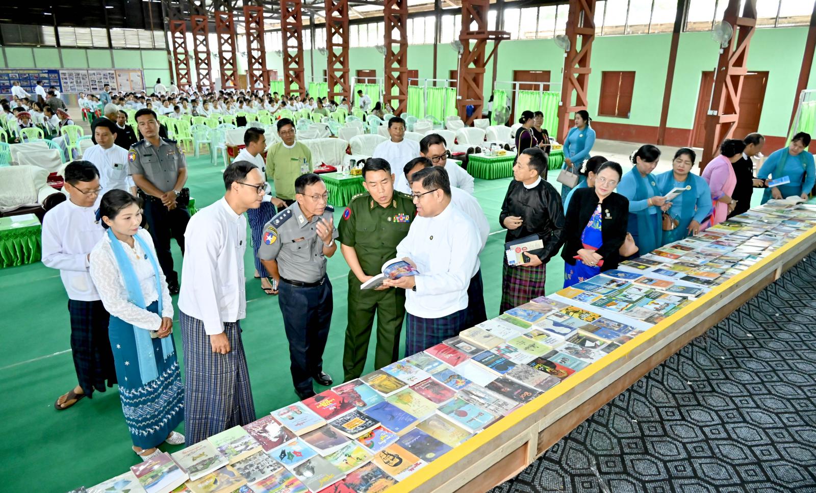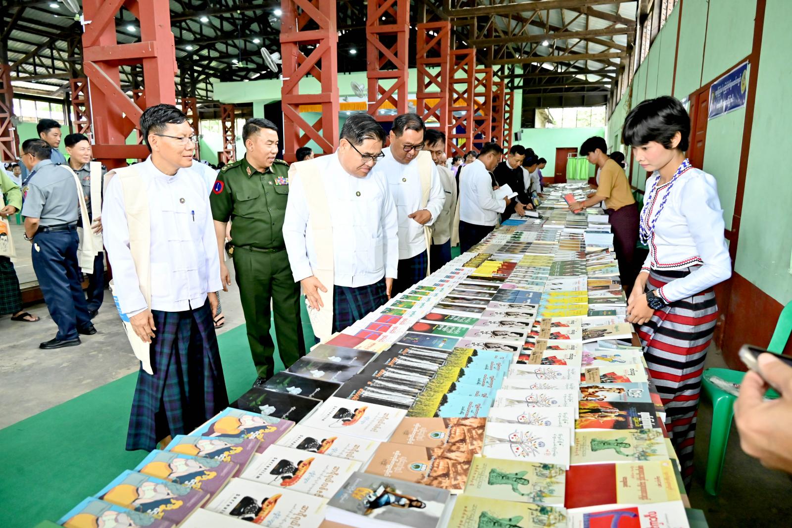 ထို့နောက် ကျောင်းသား/ကျောင်းသူလေးများက“ဘက်စုံပညာကိုရည်တို့လှမ်းချီ” တေးသီချင်းဖြင့် သီဆိုဖျော်ဖြေခဲ့ကြပြီး ပြည်နယ်ဝန်ကြီးချုပ်၊ ပြည်နယ်တရားလွှတ်တော်တရားသူကြီးချုပ်နှင့် ဇနီး၊ ပြည်နယ်အစိုးရအဖွဲ့ဝင် ဝန်ကြီးများနှင့် ၎င်းတို့၏ ဇနီးများ၊ ပြည်နယ်/ခရိုင်/ မြို့နယ်အဆင့် ဌာန ဆိုင်ရာများ၊ စာရေးဆရာများအသင်းမှ တာဝန်ရှိသူများ၊ ပြည်နယ်အမျိုးသမီးရေးရာအဖွဲ့နှင့် မိခင်နှင့် ကလေးစောင့်ရှောက်မှုကြီးကြပ်ရေးအဖွဲ့ဝင်များ၊ ပညာရေးဒီဂရီကောလိပ်နှင့် သူနာပြုသားဖွား သင်တန်းကျောင်းများမှ သင်တန်းသား/သင်တန်းသူများ၊ အခြေခံပညာ ကျောင်းသား/ကျောင်းသူ လေးများက ပြန်ကြားရေးနှင့်ပြည်သူ့ဆက်ဆံရေးဦးစီးဌာနက စာဖတ်ရှန်မြှင့်တင်ရေးလှုပ်ရှားမှုအဖြစ် ခင်းကျင်းပြသထားသည့် သုတ/ ရသ စာအုပ်စာစောင်များ၊ မဂ္ဂဇင်း၊ ဂျာနယ်များ၊ ကလေးစာပေများ ခင်းကျင်းပြသထားမှုနှင့် နယ်လှည့်စာကြည့်တိုက်တို့အား လှည့်လည်ကြည့်ရှုအားပေးခဲ့ကြသည်။