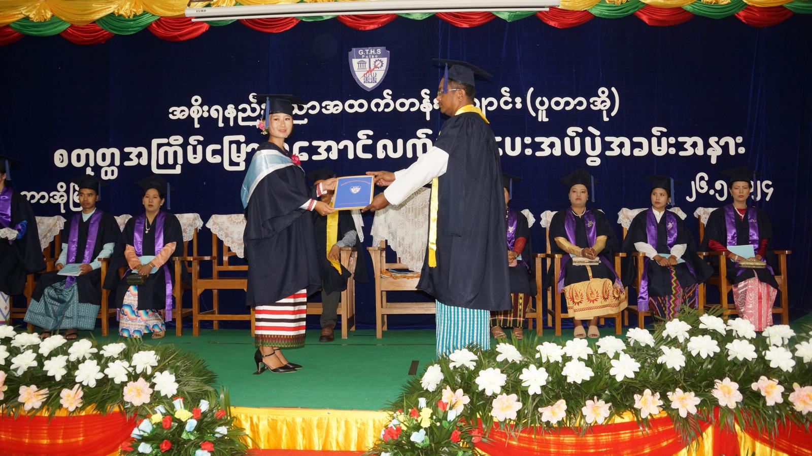 ဆက်လက်၍ ကျောင်းအုပ်ဆရာကြီး ဦးမောင်မောင်သန့်က အစိုးရနည်းပညာအထက်တန်း ကျောင်း(ပူတာအို)၏ ၂၀၂၁-၂၀၂၂ ပညာသင်နှစ်နှင့် ၂၀၂၂-၂၀၂၃ ပညာသင်နှစ်တို့တွင် G.T.H.S တက်ရောက်အောင်မြင်ခဲ့ကြသည့် လူငယ်မောင်မယ် (၁၃)ဦးကို G.T.H.S အောင်လက်မှတ်များ ပေးအပ်ချီးမြှင့်ခဲ့သည်။
