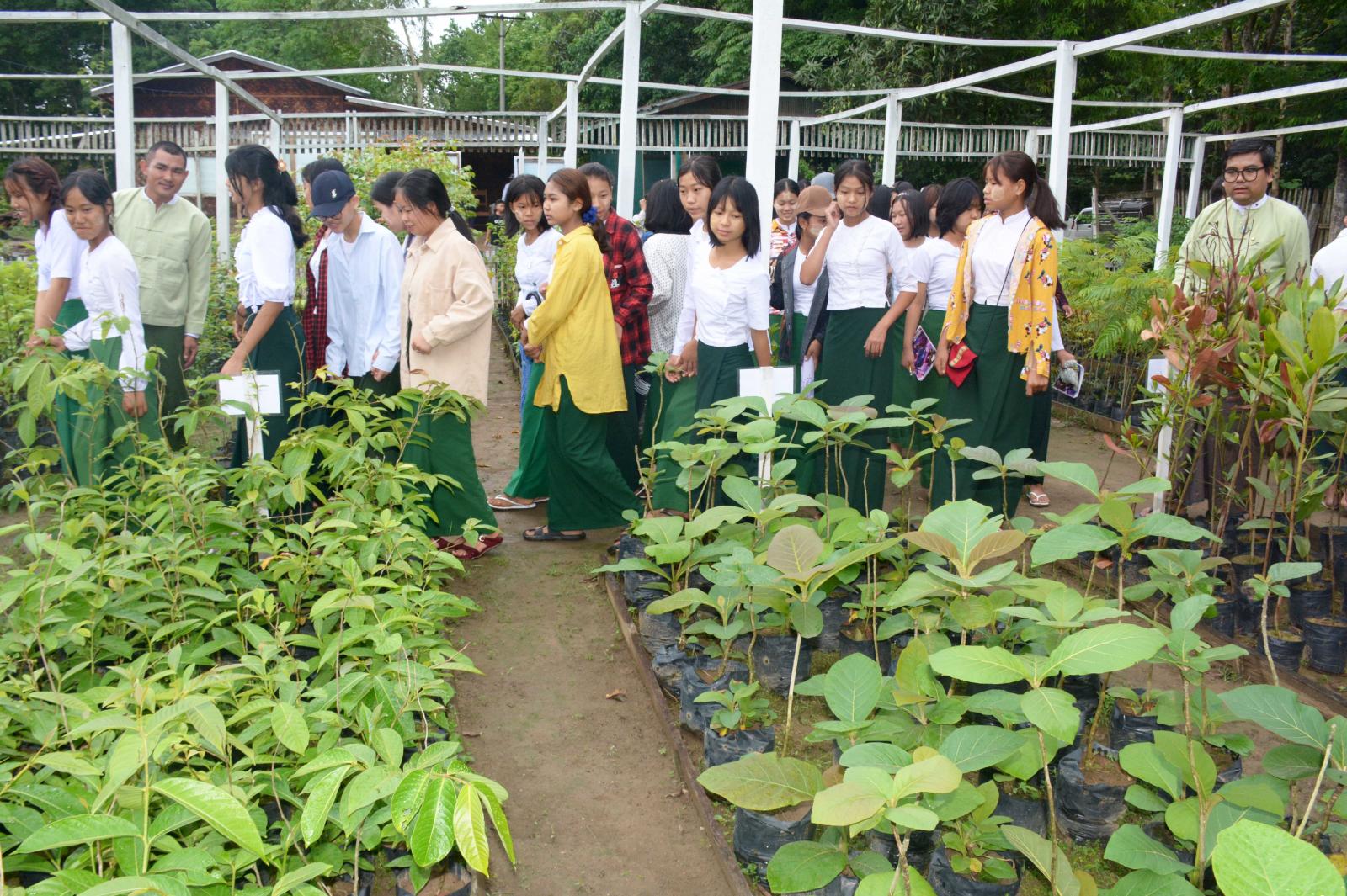 ဆက်လက်၍ အသိပညာပေးဟောပွဲသို့ တက်ရောက်လာကြသူများက မြို့မသစ်တော ပျိုးဥယျာဉ်သို့ သွားရောက်လေ့လာကြရာ မြို့နယ်ဦးစီးမှူးက ပျိုးဥယျာဉ်တွင် ဒေသရေမြေ ရာသီဥတုနှင့် ကိုက်ညီသည့် ပျိုးပင်မျိုးစိတ်များ စိုက်ပျိုးထားရှိမှုအခြေအနေများနှင့် ပျိုးပင်အမျိုးအမည်များကို ရှင်းလင်းပြသပြီး ကျောင်းသား ကျောင်းသူများက စိတ်ဝင်တစား လေ့လာကြည့်ရှုခဲ့ကြကြောင်းနှင့် ပျိုးပင်များကို ကျောင်းသားကျောင်းသူများအား ပေးဝေခဲ့ကြကြောင်း သိရသည်။