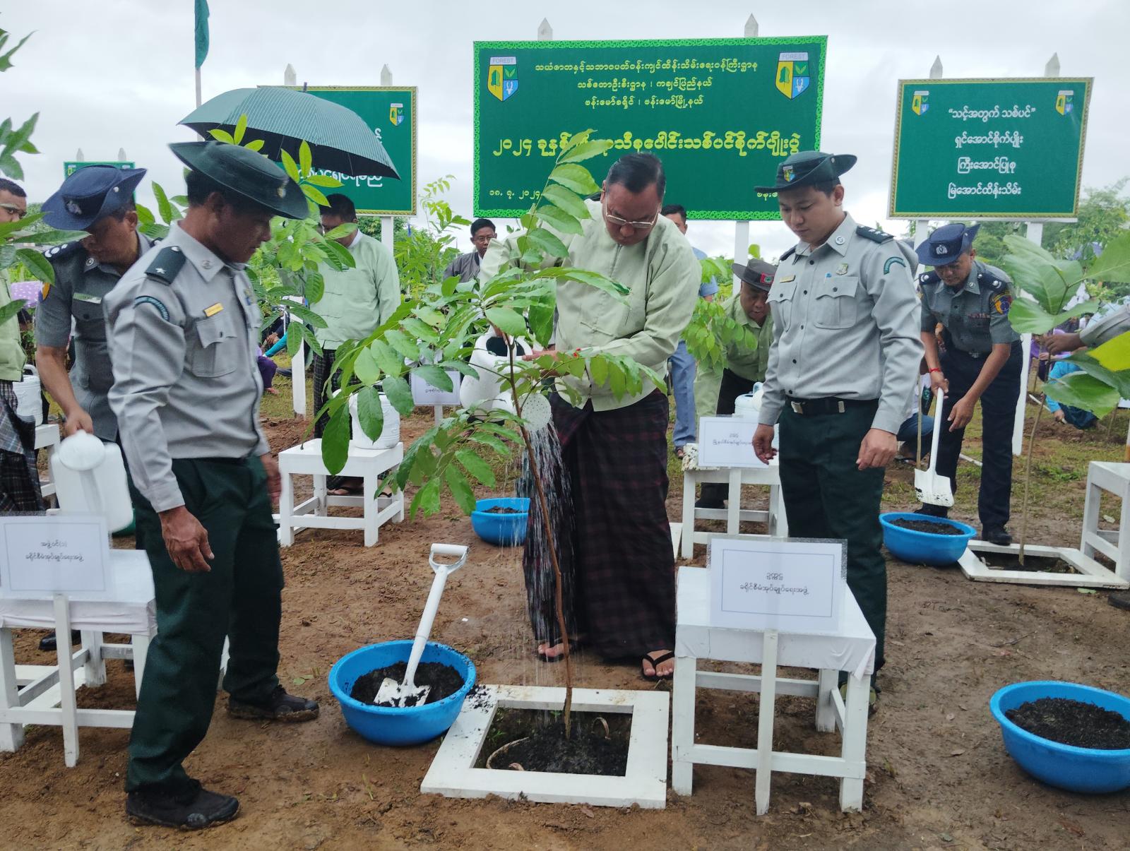 ကချင်ပြည်နယ်၊ ဗန်းမော်ခရိုင်၊ ဗန်းမော်မြို့တွင် သဘာဝပတ်ဝန်းကျင် စိမ်းလန်းစိုပြေစေရေးအတွက် ရည်ရွယ်၍ ၂၀၂၄ ခုနှစ် မိုးရာသီသစ်ပင်စိုက်ပျိုးပွဲတော်ကို ယနေ့နံနက် ၈ နာရီက ၃ မိုင်(ရွှေပြည်သာ) ရပ်ကွက်ရှိ အစိုးရနည်းပညာ အထက်တန်းကျောင်းဝန်းအတွင်းတွင် ပျိုးပင်ပေါင်း (၁,၅၀၀)ကို ဗန်းမော်ခရိုင် သစ်တောဦးစီးဌာနက ဦးဆောင်ပြီး စုပေါင်းစိုက်ပျိုးခဲ့ကြကြောင်း သိရှိရပါသည်။