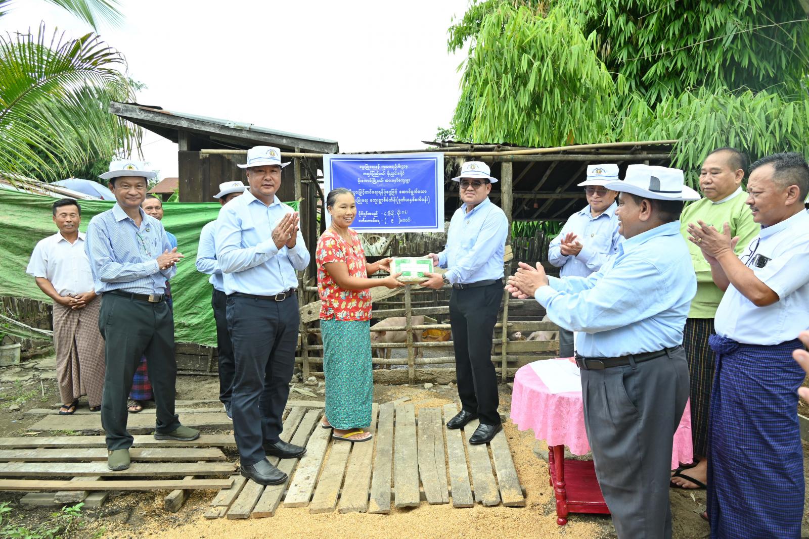 ယင်းနောက် ဆားမှော်ကျေးရွာသို့ ရောက်ရှိပြီး ကျေးရွာအတွင်း နိုင်ငံ့စီးပွားမြှင့်တင်ရေး ရန်ပုံ ငွေ ဒုတိယနှစ်စက်ဝန်း ချေးငွေဖြင့် ပိုင်ရှင်ဒေါ်မိုးမိုးဝင်းနှင့် ဦးဝင်းကြိုင်တို့ နေအိမ်ခြံဝင်းများအတွင်း အသားတိုးဝက်များမွေးမြူထားရှိမှုကို ကြည့်ရှုစစ်ဆေးခဲ့ကြပြီး မွေးမြူရေးအထောက်အကူပြုဆေးဝါး များ၊ အာဟာရဖြည့်စွက်စာများ၊ ခြံဖြန်းပိုးသတ်ဆေးဘူးများကို ထောက်ပံ့ပေးအပ်ခဲ့ကြရာ ပြည်နယ် ဦးစီးမှူးက ဆေးဝါးပစ္စည်းများ ရောစပ်အသုံးပြုနိုင်ရေး အသိပညာပေး ရှင်းလင်းဆွေးနွေးပြောကြား ခဲ့ပြီး ပြည်နယ်ဝန်ကြီးချုပ်က ကျေးရွာအတွင်း အသားတိုးဝက်မွေးမြူရေးလုပ်ငန်း တိုးချဲ့ဆောင်ရွက် နိုင်ရေး နိုင်ငံ့စီးပွားမြှင့်တင်ရေး ရန်ပုံငွေ ဒုတိယနှစ်စက်ဝန်းမှ ထပ်တိုးချေးငွေ ချထားပေးနိုင်ရေး ပေါင်းစပ်ဆောင်ရွက်ပေးခဲ့သည်။