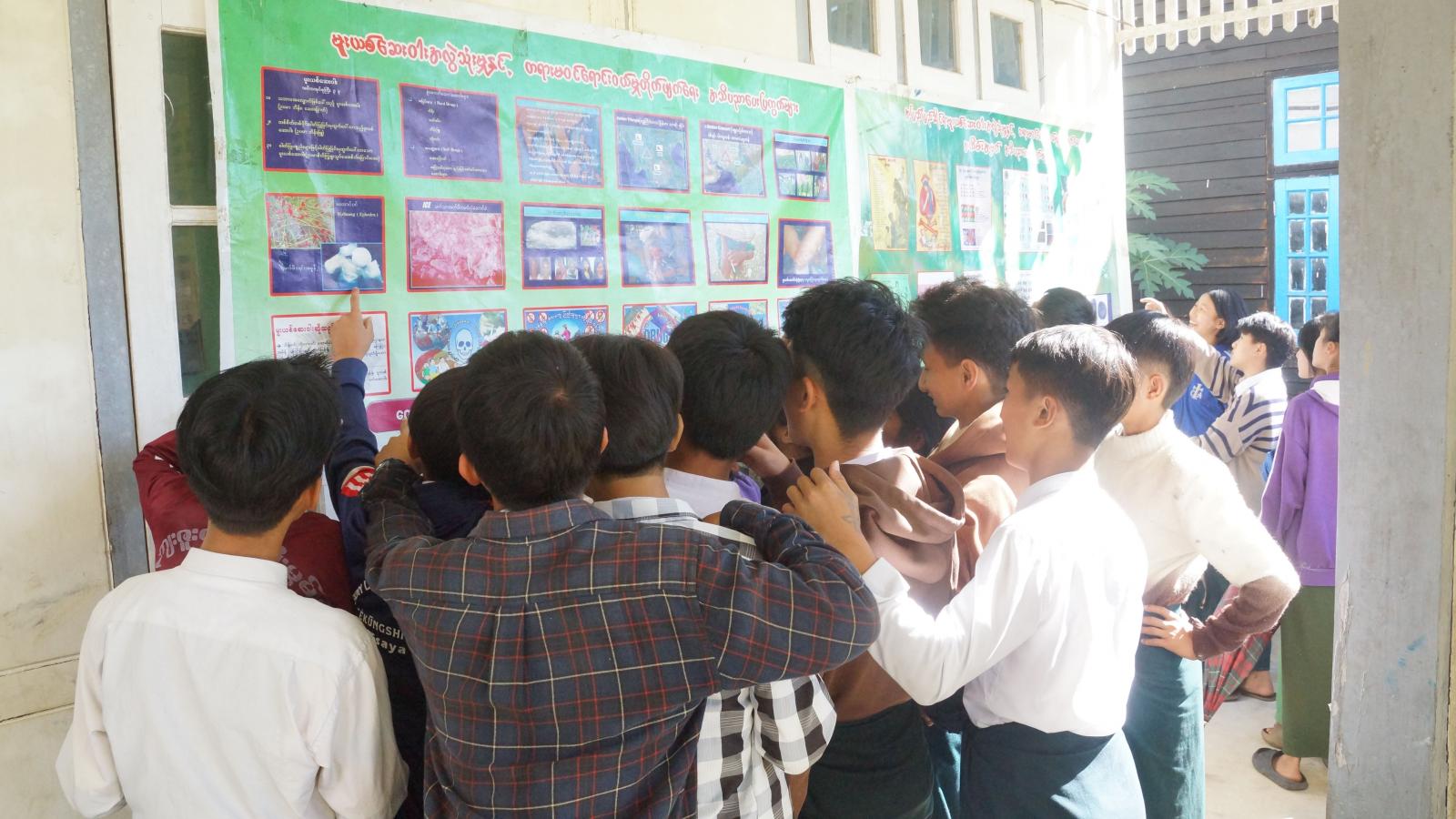 ထို့နောက် ကျောင်းသား ကျောင်းသူများက ခရိုင်ပြန်ကြားရေးနှင့်ပြည်သူ့ဆက်ဆံရေးဦးစီးဌာနက (၁၀၄)ကြိမ်မြောက် အမျိုးသားအောင်ပွဲနေ့အထိမ်းအမှတ်အကြိုအနေဖြင့် ခင်းကျင်းပြသထားသော မူးယစ်ဆေးဝါးအလွဲသုံးမှုနှင့် တရားမဝင်ရောင်းဝယ်မှုတိုက်ဖျက်ရေး အသိပညာပေးနံရံကပ်စာစောင်များကို စိတ်ဝင်တစား ကြည့်ရှုလေ့လာခဲ့ကြောင်း သိရသည်။