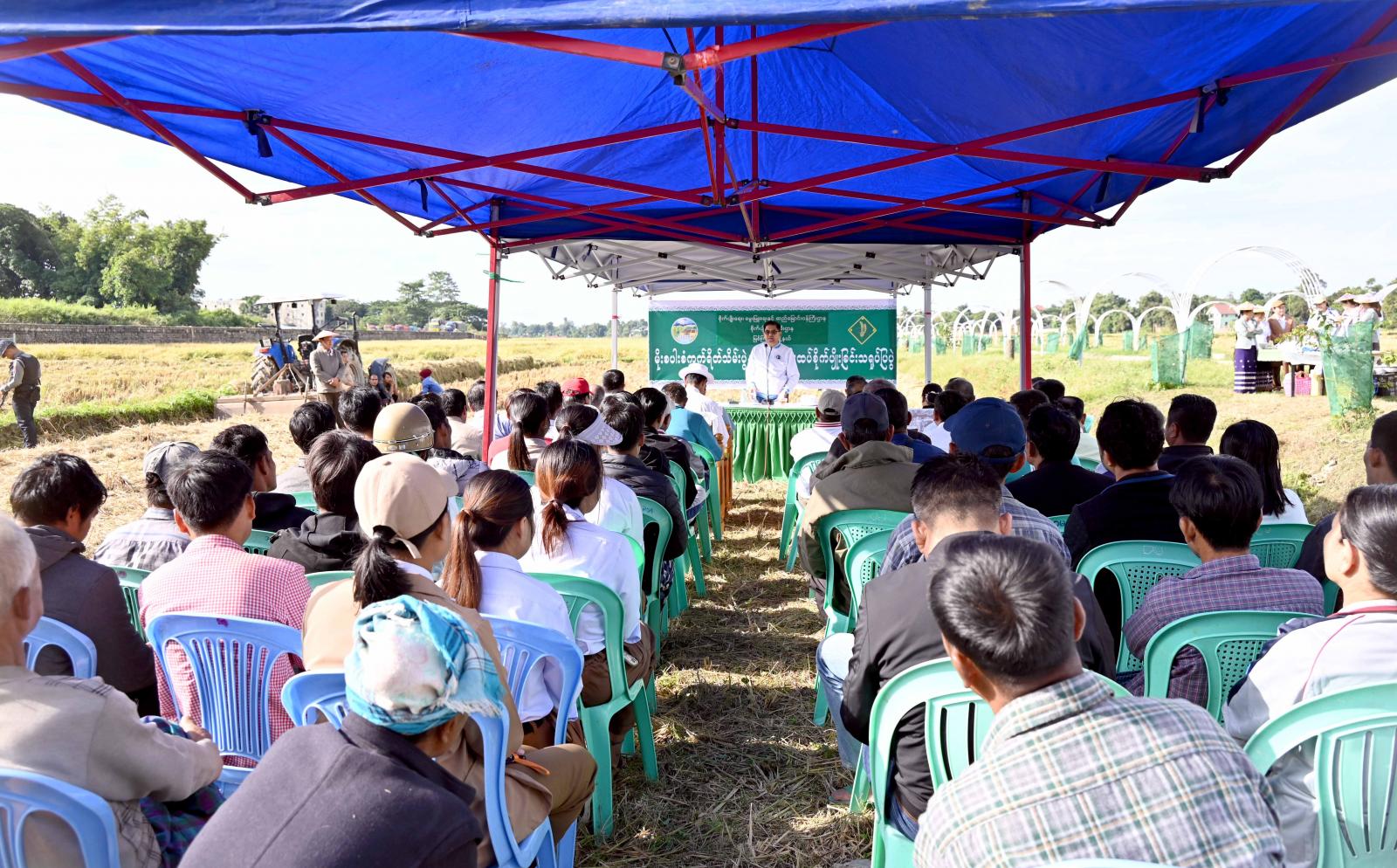 အဆိုပါ အခမ်းအနားတွင် ပြည်နယ်ဝန်ကြီးချုပ်က တောင်သူများအား ပြည်နယ်အစိုးရအဖွဲ့က မိုးစပါးစံပြစိုက်ခင်းအပြင် သီးထပ်သီးညှပ်များ တိုးချဲ့စိုက်ပျိုးနိုင်ရေး ဘဏ္ဍာနှစ်အလိုက် စိုက်ပျိုးရေလုံလောက်ရေး၊ ရေဝပ်ဧရိယာများ ရေစီးရေလာကောင်းမွန်ရေးနှင့် လယ်အဝင်အထွက်လမ်းများ ကောင်းမွန်ရေးအတွက် ကြိုးပမ်းဆောင်ရွက်ပေးခဲ့မှုအခြေအနေများနှင့် ယခုအခါ မိုးစပါးရိတ်သိမ်းပြီး ရာသီချိန်အမီ သီးထပ်စိုက်ပျိုးစွမ်းအား (၂၀၀) ရာခိုင်နှုန်းအထိ တိုးတက်မြင့်မားလာစေရေး၊ စားဆီဖူလုံမှု (၁၀၀) ရာခိုင်နှုန်းရရှိရေး ရိုးပြတ်မကျန် စိုက်ပျိုးဆောင်ရွက်သွားမည့် အစီအစဉ်အပေါ် ဒေသခံတောင်သူများ၊ ဌာနဆိုင်ရာများအားလုံးက အလေးအနက်ထား ဝိုင်းဝန်းကြိုးပမ်းဆောင်ရွက်ကြရေးနှင့် စိုက်ပျိုးရေးအတွက် လိုအပ်သည့် မျိုးကောင်းမျိုးသန့်အပါအဝင် သွင်းအားစုများ လုံလောက်ပြည့်ဝအောင် ပံ့ပိုးသွားနိုင်ရေး စီမံဆောင်ရွက်ထားရှိသည့် အစီအမံများကို ရှင်းလင်းပြောကြားသည်။
