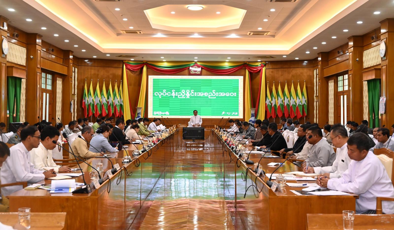 ထို့နောက် ပြည်နယ်အစိုးရအဖွဲ့ အတွင်းရေးမှူး ဦးတင်မောင်ဆွေက ကချင်ပြည်နယ်နေ့ အထိမ်းအမှတ် အခမ်းအနားများအတွက် ဇန်နဝါရီ (၈)ရက်နေ့မှ စတင်၍ ဇန်နဝါရီ (၁၁)ရက်နေ့အထိ ကျင်းပပြုလုပ်သွားမည့် အသေးစိတ်အစီအမံများနှင့် ကြိုတင်ပြင်ဆင်ဆောင်ရွက်ရမည့် ကိစ္စရပ်များ၊ အုပ်ချုပ်ထောက်ပံ့မှုဆိုင်ရာ ညှိနှိုင်းပေါင်းစပ်ပေးရမည့်ကိစ္စရပ်များကို ရှင်းလင်းတင်ပြပြီး ပြည်နယ်အဆင့် ဌာနဆိုင်ရာတာဝန်ရှိသူများက ပြည်နယ်နေ့အထိမ်းအမှတ် အဖွင့်မနောနှင့် အပိတ်မနော၊ သဝဏ်လွှာဖတ်ပွဲအခမ်းအနားနှင့် ဒေသထွက်ထုတ်ကုန် ပစ္စည်းပြခန်းများ၊ သစ်သီးဝလံပြပွဲ/ ပြိုင်ပွဲနှင့် ဆုချီးမြှင့်ပွဲ၊ ဂုဏ်ထူးဆောင်ဆုတံဆိပ်၊ ဆုပစ္စည်းနှင့် ဂုဏ်ပြုမှတ်တမ်းလွှာများ ပေးအပ်ချီးမြှင့်ပွဲ နှင့် စာဖတ်ရှိန်မြှင့်တင်ရေးပွဲတော် ကျင်းပပြုလုပ်သွားမည့် အစီအစဉ်များနှင့် စပ်လျဉ်း၍ အသီးသီးဆွေးနွေးတင်ပြကြရာ ပြည်နယ်ဝန်ကြီးများက တင်ပြချက်များအပေါ် ဖြည့်စွက်သုံးသပ်ဆွေးနွေးတင်ပြကြပြီး ပြည်နယ်ဝန်ကြီးချုပ်က လိုအပ်သည်များကို ဌာနဆိုင်ရာတာဝန်ရှိသူများနှင့် ပေါင်းစပ်ညှိနှိုင်း၍ ဖြေရှင်းဆောင်ရွက်ပေးခဲ့သည်။