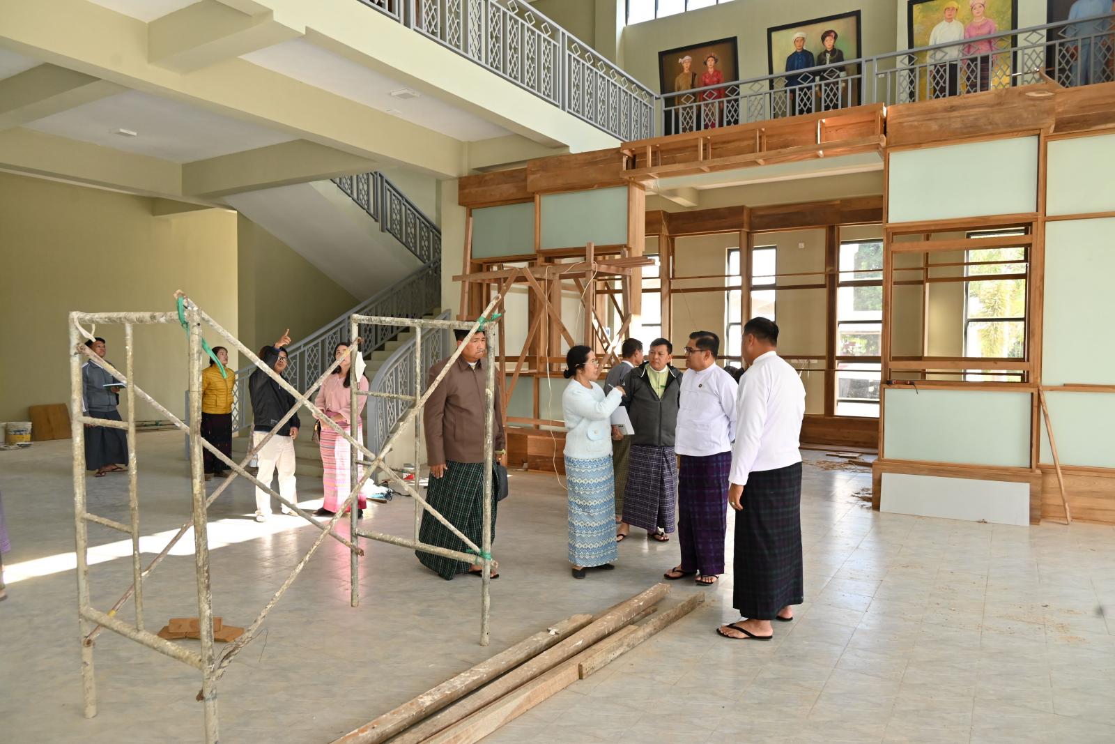 ယင်းနောက် အစည်းအဝေးအပြီးတွင် ပြည်နယ်ဝန်ကြီးချုပ်သည် ပြည်နယ်တိုင်းရင်းသားရေးရာဝန်ကြီး ဦးကျော်မင်းခိုင်၊ ပြည်နယ်အဆင့် ဌာနဆိုင်ရာတာဝန်ရှိသူများနှင့်အတူ ပြည်နယ်နေ့အထိမ်းအမှတ်ဖွင့်လှစ်နိုင်ရေး စီစဉ်ဆောင်ရွက်လျက်ရှိသည့် မြစ်ကြီးနားမြို့၊ ဧရာရပ်ကွက်အတွင်းရှိ ရှေးဟောင်းသုတေသနနှင့် အမျိုးသားပြတိုက်ဦးစီးဌာန၊ ပြည်နယ်ယဉ်ကျေးမှုပြတိုက်ဝင်းအတွင်း ယဉ်ကျေးမှုပြတိုက် နှစ်ထပ်အဆောက်အဦသစ် တည်ဆောက်ပြီးစီးမှုအခြေအနေများနှင့် ပြတိုက်အဆောက်အဦသစ် မြေညီထပ်တွင် ဖွင့်လှစ်ပြသသွားမည့် ပြခင်းပြကွက်အစီအမံများနှင့် စပ်လျဉ်း၍ ညွှန်ကြားရေးမှူးနှင့်တာဝန်ရှိသူများက လိုက်လံရှင်းလင်းတင်ပြမှုများအပေါ် ပြည်နယ်ဝန်ကြီးချုပ်က ဖွင့်ပွဲအခမ်းအနား ပြင်ဆင်ဆောင်ရွက်နိုင်ရေးအတွက် လိုအပ်သည်များ ဖြည့်ဆည်းဆောင်ရွက်ပေးနိုင်ရေး ဌာနဆိုင်ရာတာဝန်ရှိသူများနှင့် ပေါင်းစပ်ညှိနှိုင်းဆောင်ရွက်ပေးခဲ့သည်။