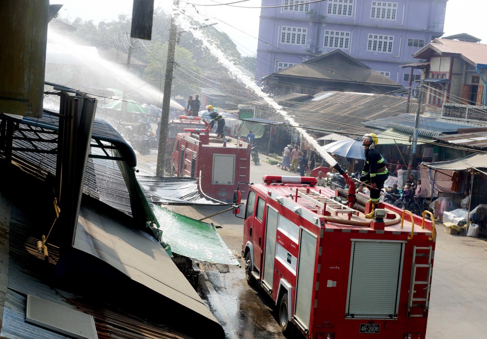 ကချင်ပြည်နယ် မိုးညှင်းခရိုင် မိုးညှင်းမြို့နယ် စည်ပင်သာယာ (မြို့မ) ဈေး၌ မီးဘေးအန္တရာယ် ကြိုတင်ကာကွယ်ရေး သဏ္ဍာန်တူ သရုပ်ပြဇာတ်တိုက်လေ့ကျင့်ခြင်းကို ယမန်နေ့နံနက် (၁၀) နာရီက သရုပ်ပြဆောင်ရွက်ခဲ့ကြောင်း သိရသည်။
