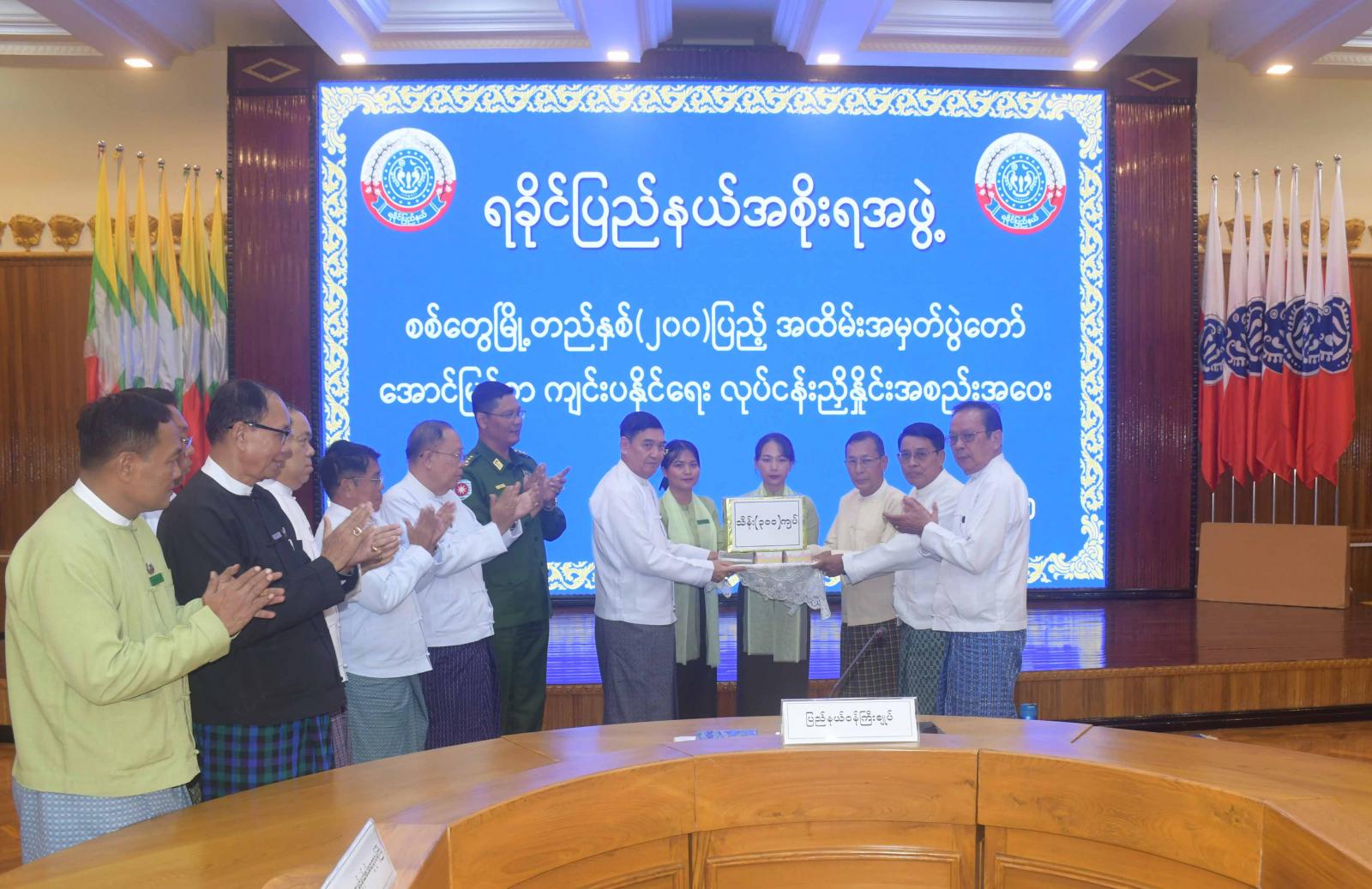 ဆက်လက်ပြီး ရခိုင်ပြည်နယ်အစိုးရအဖွဲ့မှ စစ်တွေမြို့တည်နှစ်(၂၀၀)ပြည့် အထိမ်း အမှတ်ပွဲတော်အောင်မြင်စွာ ကျင်းပနိုင်ရေးအတွက် ကျပ်သိန်း(၃၀၀) ထောက်ပံ့လှူဒါန်းခဲ့ပြီး ပြည်နယ်ဝန်ကြီးချုပ်က နိဂုံးချုပ်အမှာစကား ပြောကြားခဲ့ကြောင်း သတင်းရရှိသည်။