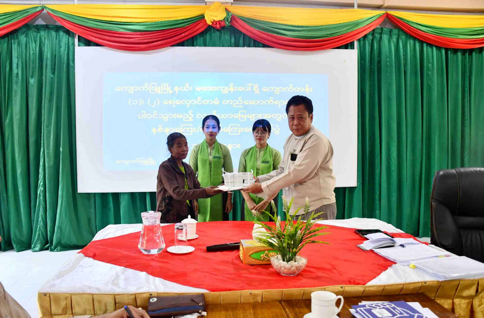ကျောက်ဖြူမြို့နယ် မဒေးကျွန်းရှိ ကျောက်တန်း(၁)(၂)ဆည်တည်ဆောက်ရာတွင်ပါဝင်းသည့် လယ်မြေများအား မြေယာလျော်ကြေး ကျပ်သိန်းခြောက်သောင်းကျော်ပေးအပ်