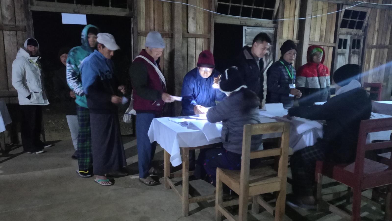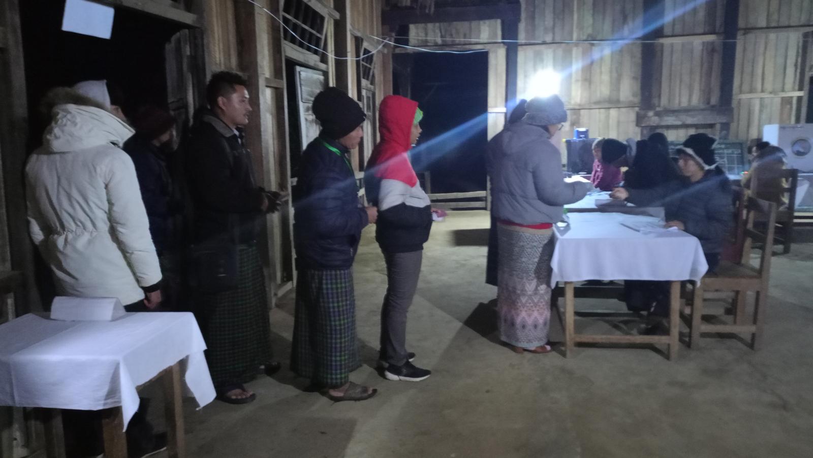 အဆိုပါမဲပေးခြင်းများကို နမ်ခမ်ကျေးရွာ၊မဲရုံအမှတ်(၁)၊ထရန်ဒမ်းကျေးရွာ မဲရုံအမှတ်(၂)၊ ငွားဇာခါးကျေးရွာ မဲရုံအမှတ်(၃)၊ မန်နိုကျေးရွာမဲရုံအမှတ်(၄)၊ ပန်ဆပ်ကျေးရွာ မဲရုံအမှတ်(၅)၊ ရပ်ကွက်(၁)၊ မဲရုံအမှတ်(၆)၊ အမှတ်(၁၃၇)တပ်နယ်မဲရုံ မဲရုံအမှတ်(၇)၊ ရပ်ကွက်(၂) မဲရုံအမှတ်(၈)၊ ရပ်ကွက်(၃)မဲရုံ အမှတ်(၉)၊ ရပ်ကွက်(၄)မဲရုံ အမှတ်(၁၀)၊ အင်ဘူးဘော့ကျေးရွာ မဲရုံအမှတ်(၁၁)၊ ရှင်ဗွေယန်ကျေးရွာ မဲရုံအမှတ်(၁၂)၊ အလန်ဂါးကျေးရွာမဲရုံအမှတ်(၁၃)၊ ထန်ဂါးကျေးရွာမဲရုံအမှတ်(၁၄) စသည့်မဲရုံပေါင်း(၁၄)ရုံတွင် မဲဆန္ဒရှင်ပေါင်း(၆၄၄၇)ဦးတို့က မဲရုံစတင်ဖွင့်လှစ်သည့်နံနက် ၆ နာရီမှစ၍ စနစ်တကျမဲဆန္ဒများလာပေးလျက်ရှိကြောင်း သိရသည်။