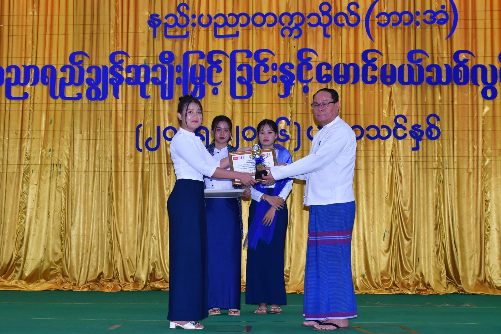 ယင်းနောက် ပြည်နယ်ဝန်ကြီးချုပ်နှင့်တာဝန်ရှိသူများက ၂၀၂၄-၂၀၂၅ ပညာသင်နှစ်တွင် ထူးချွန်စွာအောင်မြင်ခဲ့သူများ၊ (၇၈)နှစ်မြောက် ပြည်ထောင်စုနေ့အထိမ်းအမှတ် စာစီစာကုံးပြိုင်ပွဲ၊ ကဗျာပြိုင်ပွဲ၊ ဆောင်းပါးပြိုင်ပွဲ၊ ပန်းချီပြိုင်ပွဲ၊ ၂၀၂၅ ခုနှစ် ကမ္ဘာ့အိုဇုန်းလွှာထိန်းသိမ်းရေးနေ့ အထိမ်းအမှတ် အလွတ်တန်းဆောင်းပါးပြိုင်ပွဲ၊ ကမ္ဘာ့ပတ်ဝန်းကျင်ထိန်းသိမ်းရေးနေ့အထိမ်းအမှတ် စာစီစာကုံးပြိုင်ပွဲတို့တွင် ဆုရရှိကြသူများ၊ တိုင်းရင်းသားတို့၏ရိုးရာယဉ်ကျေးမှုအကအလှများဖြင့် သီဆိုကပြဖျော်ဖြေပေးခဲ့ကြသည့် အဖွဲ့များအား ဂုဏ်ပြုဆုများပေးအပ်ချီးမြှင့်ကြပြီး သယံဇာတရေးရာဝန်ကြီးနှင့် နည်းပညာတက္ကသိုလ်(ဘားအံ)ရူပဗေဒဌာနမှူးတို့က King & Queen ဆုများကို ပေးအပ်ချီးမြှင့်ခဲ့ကြကာ ပထမနှစ်မောင်မယ်သစ်လွင်ကျောင်းသား၊ ကျောင်းသူများကိုယ်စား ကျောင်းသားတစ်ဦးက ကျေးဇူးတင်စကားပြန်လည်ပြောကြားသည်။