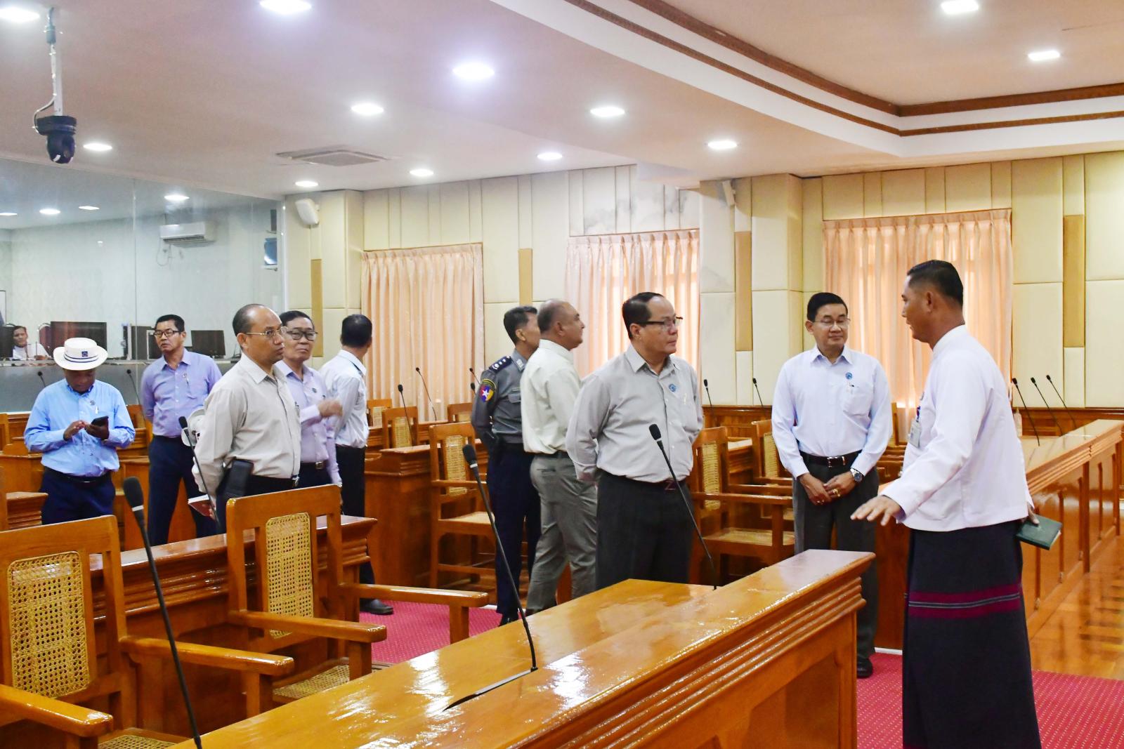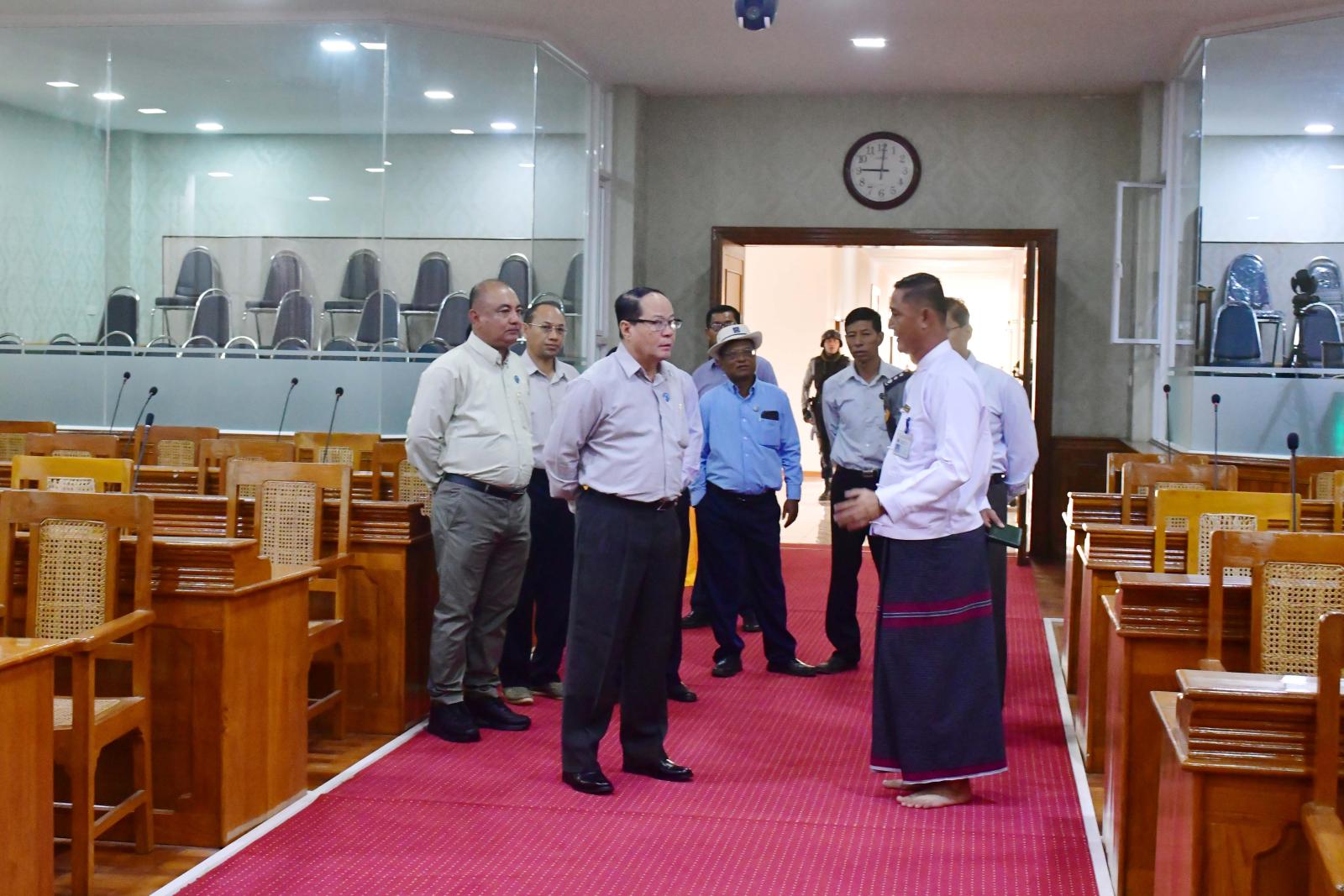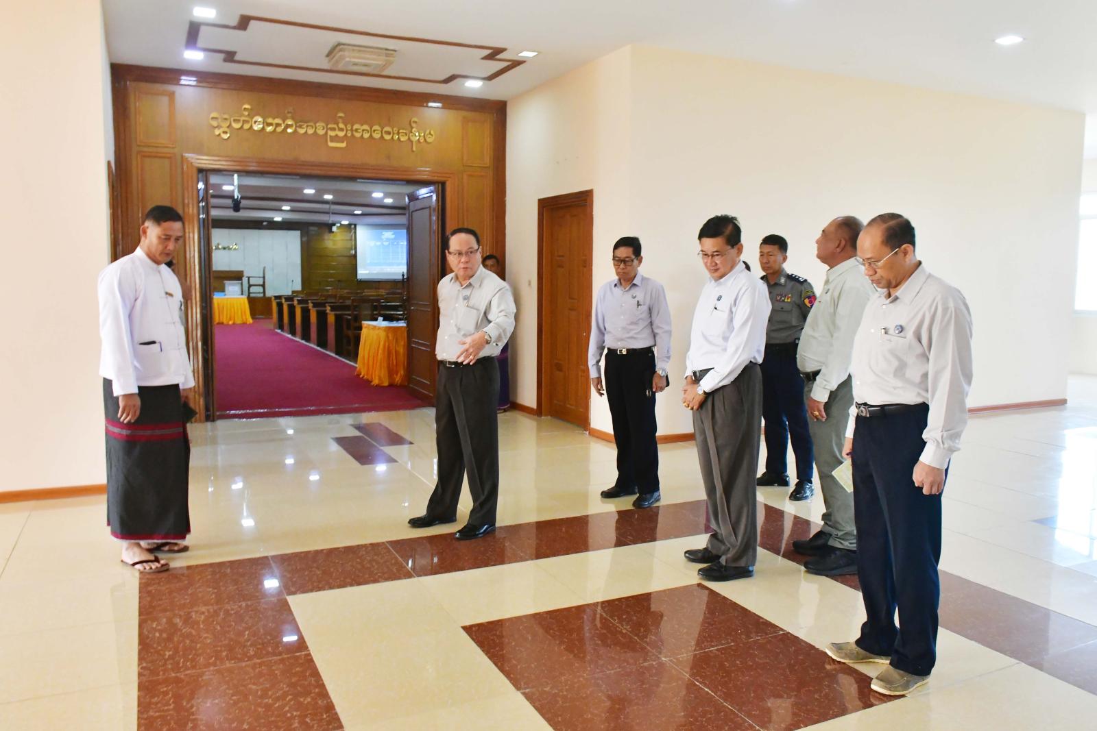 ဦးစွာ ပြည်နယ်ဝန်ကြီးချုပ်နှင့်အဖွဲ့သည် မဲဆန္ဒရှင်ပြည်သူများရွေးချယ်တင်မြောက်သော ပြည်နယ်လွှတ်တော်ကိုယ်စားလှယ်များ ရွေးကောက်တင်မြောက်ခြင်း၊ ပြည်သူလူထုကိုကိုယ်စားပြုခြင်း၊ ဥပဒေပြုခြင်း၊ အပြန်အလှန်ထိန်းညှိခြင်း လုပ်ငန်းတာဝန်များထမ်းဆောင်နိုင်ရေး ပြည်နယ်လွှတ်တော်အစည်းအဝေးခန်းမအား ကြိုတင်ပြင်ဆင်ထားရှိမှု၊ လွှတ်တော်ကိုယ်စားလှယ်များထံဖြန့်ဝေမည့် ဥပဒေ၊ နည်းဥပဒေများ၊ သတင်းမီဒီယာခန်းမ၊ လွှတ်တော်ကိုယ်စားလှယ်များ၏ နားနေခန်း၊ စားသောက်ခန်း၊ အစည်းအဝေးခန်း၊ ဧည့်ခန်း၊ လွှတ်တော်ဥက္ကဋ္ဌ၊ ဒုဥက္ကဋ္ဌရုံးခန်း၊ ရေးရာကော်မတီရုံးခန်းများ၊ လွှတ်တော်စာကြည့်တိုက်၊ သင်တန်းခန်းမနှင့် ပြည်နယ်လွှတ်တော်ရုံးရှိ ဌာနခွဲ ၂ ခု၊ ဌာနစု ၁၀ စု၏ ရုံးခန်းများနှင့် လုပ်ငန်းဆောင်ရွက်ပုံများကို ကြည့်ရှုစစ်ဆေးရာ ပြည်နယ်လွှတ်တော်ရုံး ညွှန်ကြားရေးမှူးက ဥပဒေပြုရေးနှင့်လွှတ်တော်အစည်းအဝေးများ စနစ်တကျကျင်းပနိုင်ရေး၊ ဝန်ထမ်းများလုပ်ငန်းကျွမ်းကျင်မှုနှင့် အရည်အသွေးမြင့်မားရေးအတွက် စီမံဆောင်ရွက်ထားရှိမှု အခြေအနေများကို ရှင်းလင်းတင်ပြပြီး ပြည်နယ်ဝန်ကြီးချုပ်က လိုအပ်သည်များအား တာဝန်ရှိသူများနှင့် ပေါင်းစပ်ညှိနှိုင်းဖြည့်ဆည်းဆောင်ရွက်ပေးခဲ့သည်။