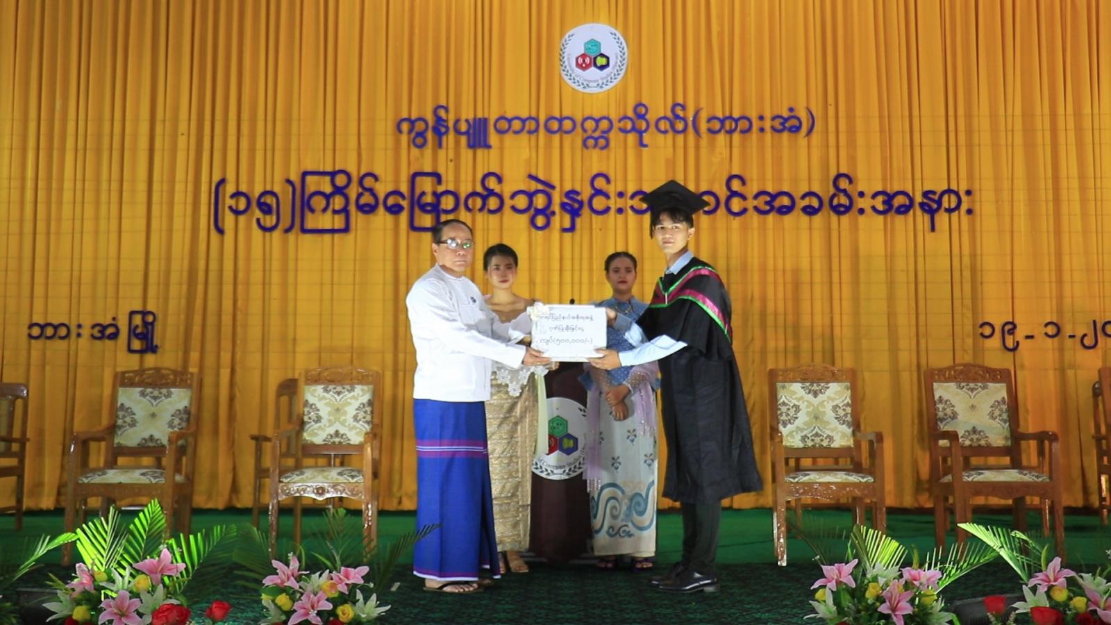 ဦးစွာ ပြည်နယ်ဝန်ကြီးချုပ် ဦးစောမြင့်ဦးက တိုးတက်ပြောင်းလဲလာသည့် သိပ္ပံနှင့်နည်းပညာဆိုင်ရာ စွန့်ဦးတီထွင်သူများ၊ ထိုးထွင်းကြံဆမှုနှင့်တီထွင်ဖန်တီးမှုများကို စွမ်းဆောင်နိုင်သည့်အရည်အချင်းပြည့်ဝသော လူ့စွမ်းအားအရင်းအမြစ်များဖြစ်အောင် ပြောင်းလဲတိုးတက်နေသည့်နည်းပညာရပ်များကို အမြဲမပြတ်လေ့လာဆည်းပူးရင်း ထူးချွန်ထက်မြတ်သည့် နိုင်ငံသားကောင်း၊ သမီးကောင်း IT ပညာရှင်များဖြစ်အောင် ကြိုးစားကြစေလိုကြောင်းပြောကြားပြီး ဘွဲ့ယူမောင်မယ်များအတွက် ငွေကျပ် (၅)သိန်းကို ချီးမြှင့်ပေးအပ်သည်။