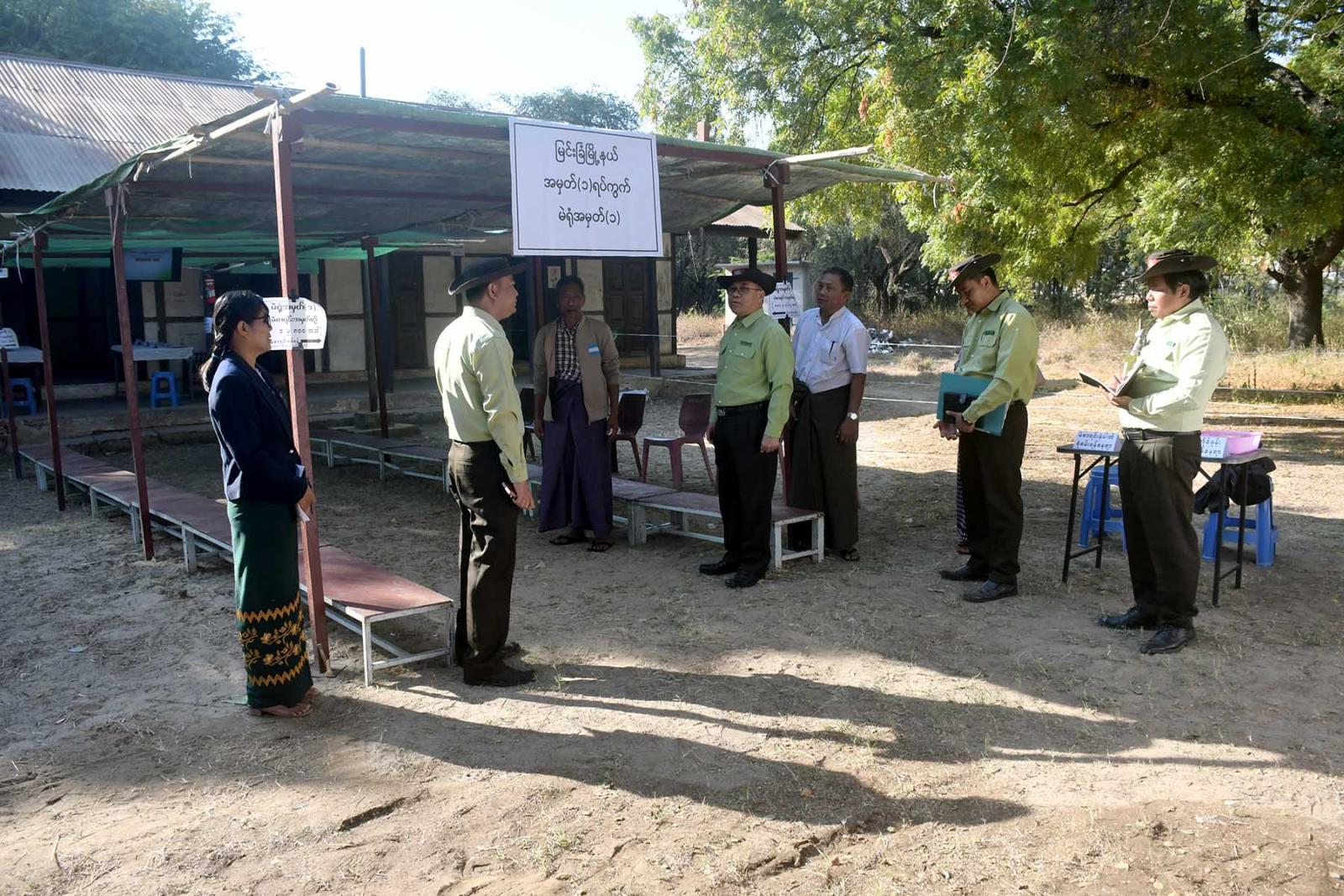 မြင်းခြံခရိုင် စီမံခန့်ခွဲရေးနှင့်အုပ်ချုပ်ရေးကော်မတီဥက္ကဋ္ဌ ဦးမင်းမင်းထွန်း၊ မြင်းခြံမြို့နယ်စီမံခန့်ခွဲရေးနှင့်အုပ်ချုပ်ရေးကော်မတီဥက္ကဋ္ဌ ဦးစိုးထွဋ်နှင့် မြို့နယ်ရွေးကောက်ပွဲကော်မရှင်အဖွဲ့ခွဲ အဖွဲ့ဝင်များက မြင်းခြံမြို့ပေါ် ရပ်ကွက် (၁၊ ၉၊ ၁၀၊ ၁၈၊ ၁၉) တို့ရှိ မဲရုံပြင်ဆင်ထားရှိမှု အခြေအနေများ၊ မဲပေးရန်စောင့်ဆိုင်းစဉ် အရိပ်ရရှိရေးအရိပ်စဉ်ပြင်ဆင်ထားရှိမှုများ၊ မဲမပေးမီ ပြည်သူများအတွက် မဲပေးခြင်း အသိပညာပေး တီဗီထားရှိမှုများအား ကြည့်ရှုစစ်ဆေးခဲ့ပြီး သက်ဆိုင်ရာမဲရုံများတွင် တာဝန်ထမ်းဆောင်ကြမည့်သူများအား မဲရုံပြင်ဆင်ရန် လိုအပ်ချက် များ မှာကြားခဲ့ကြောင်း သိရသည်။