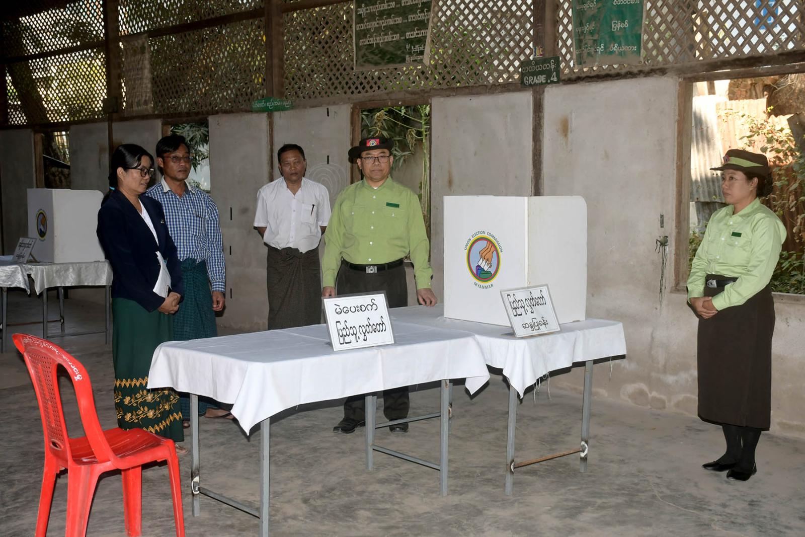 မန္တလေးတိုင်းဒေသကြီး မြင်းခြံခရိုင် စီမံခန့်ခွဲရေးနှင့်အုပ်ချုပ်ရေးကော်မတီဥက္ကဋ္ဌ ဦးမင်းမင်းထွန်းနှင့် တာဝန်ရှိသူများ မြင်းခြံမြို့အတွင်းရှိ မဲရုံပြင်ဆင်ထားရှိမှု အခြေအနေများအား ကွင်းဆင်း ကြည့်ရှုစစ်ဆေးကို ယမန်နေ့ ညနေ ၃ နာရီမှစတင်၍ ကြည့်ရှုစစ်ဆေးကြသည်။
