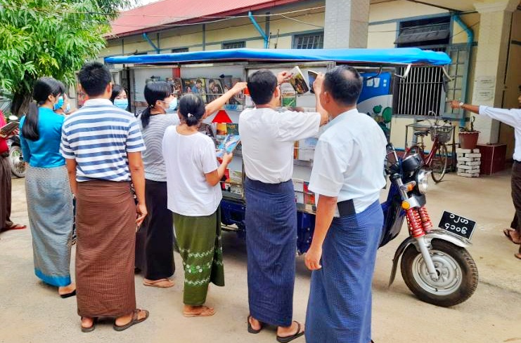 ထိုသို့ Mobile library စနစ်ဖြင့် စာအုပ်စာစောင်ပြသခြင်းနှင့် ငှားရမ်းပေးခြင်းကို မြို့နယ်ပြန်ကြားရေးနှင့်ပြည်သူ့ဆက်ဆံရေးဦးစီးဌာနမှ ဝန်ထမ်းများက ဌာနဆိုင်ရာရုံးများရှိ ဝန်ထမ်းများ စာပေကိုအလွယ် တကူလေ့လာဖတ်ရှုနိုင်ရန်အတွက် သုတ/ရသ စာအုပ်များ၊ မဂ္ဂဇင်းစာအုပ်များ၊ ဂျာနယ်များစသည့် အသိပညာဗဟုသုတရရှိစေမည့် စာအုပ်စာစောင်များကို Mobile library စနစ်ဖြင့် ငှားရမ်းပေးခြင်းကို အပတ်စဉ်ဆောင်ရွက်ပေးလျက်ရှိသည်။
