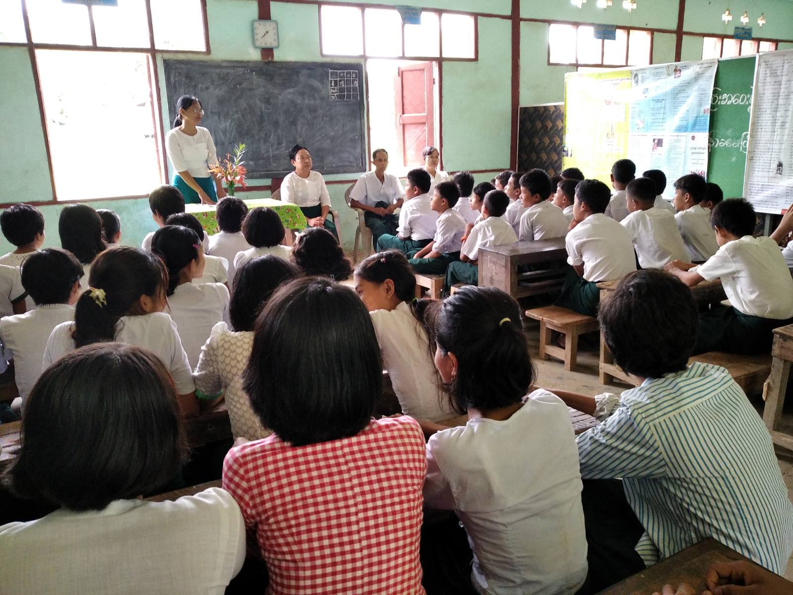 ရှေးဦးစွာ ကျောင်းအုပ်ဆရာမကြီးဒေါ်မြင့်မြင့်အေးက အဖွင့်အမှာစကားပြောကြားပြီး ပြန်ကြားရေးနှင့်ပြည်သူ့ဆက်ဆံရေးဦးစီးဌာန၊ မြို့နယ်ဦးစီးမှူးဒေါ်သန်းသန်းဝင်းက ယနေ့ကမ္ဘာနှင့်အဝှမ်းကြီးမားသည့် ပြဿနာတစ်ရပ်ဖြစ်သည့် လူကုန်ကူးမှုနှင့်လူမှောင်ခိုမှုဖြစ်စဉ်များအကြောင်း၊ လူကုန်ကူးမှု၏အဓိပ္ပါယ်ဖွင့်ဆိုချက်၊ လူကုန်ကူးရန်စုဆောင်းခြင်း၊ အမျိုးသမီးများတွေ့ကြုံရသော လူကုန်ကူးမှုအန္တရာယ်များ၊ ဒူဘိုင်းတွင်လူကုန်ကူးခံရသော အမျိုးသမီးငယ်(၇)ဦး မြန်မာနိုင်ငံသို့ ပြန်လည်ရောက်ရှိလာပုံတို့ကို အသိပညာပေးဟောပြောပြီး ရုပ်/သံ-၃ ဦးစိုးပိုင်က ရှန်တီစေတနာ့ဝန်ထမ်းအဖွဲ့မှ ပေးပို့ထားသော “ဆင်ကလေးပအို့ အအေးမိသွားပြီ”စာအုပ်ဖြင့် ပုံပြင်များပြောပြခဲ့သည်။