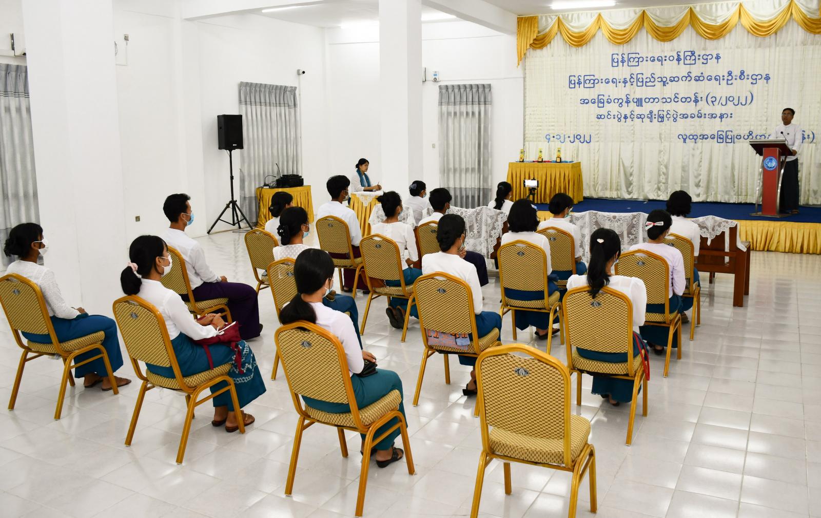ပြန်ကြားရေးဝန်ကြီးဌာန၊ ပြန်ကြားရေးနှင့်ပြည်သူ့ဆက်ဆံရေးဦးစီးဌာနသည် ဝန်ထမ်းများ လုပ်ငန်းစွမ်းဆောင်ရည်ကောင်းမွန်ပြီး နည်းပညာ ကျွမ်းကျင်မှု အရည်အသွေးမြင့်မား လာစေရန်ရည်ရွယ်၍ အခြေခံကွန်ပျူတာသင်တန်းများကို ဖွင့်လှစ်ပေးရာ ယမန်နေ့တွင် ကွန်ပျူတာ သင်တန်း အမှတ်စဉ်(၃)သင်တန်းဆင်းပွဲကို ရန်ကုန်အနောက်ပိုင်းခရိုင် လူထုအခြေပြုဗဟိုဌာန(ဗဟန်း)၊ (Community Centre) ၌ နေလယ် ၂ နာရီတွင် ကျန်းမာရေးဝန်ကြီးဌာနမှ ကိုဗစ်-၁၉ ရောဂါကာကွယ်ရေးဆိုင်ရာ လမ်းညွှန်ချက်များ၊ စည်းကမ်းချက်များ နှင့်အညီ ကျင်းပသည်။