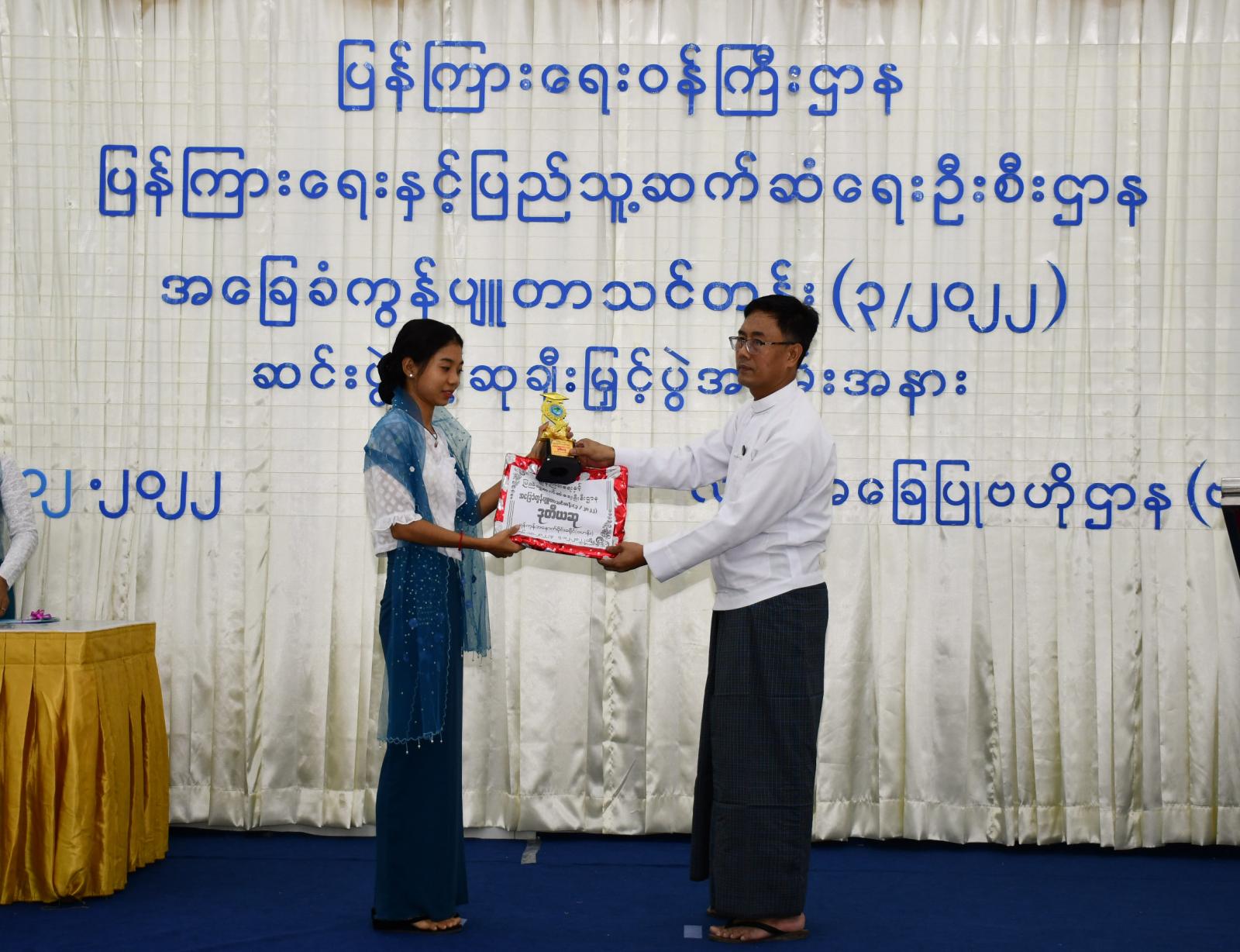 ဆက်လက်၍ အခြေခံကွန်ပျူတာသင်တန်း အမှတ်စဉ်(၃) သင်တန်းဆင်းပွဲတွင် ပထမဆုရ၊ ပန်းဘဲတန်းမြို့နယ်ရုံးမှ ရုံးအကူဒေါ်မိုးနန္ဒာ၊ ဒုတိယဆုရကျောက်တံတားမြို့နယ်ရုံးမှ ရုံးအကူဒေါ်ခိုင်သဇင်ကျော်၊ တတိယဆုရ ကြည်မြင်တိုင်မြို့နယ်ရုံးမှ ရုံးအကူဒေါ်ဝင့်ဝါနိုင်နှင့် သင်တန်းသားများအတွက် သင်တန်းဆင်းလက်မှတ်များကို ရန်ကုန်တိုင်းဒေသကြီး၊ ပြန်ကြားရေးနှင့်ပြည်သူ့ဆက်ဆံရေးဦးစီးဌာန၊ ညွှန်ကြားရေးမှူး ဦးဆန်းဝင်းကပေးအပ် ချီမြင့်ခဲ့သည်။