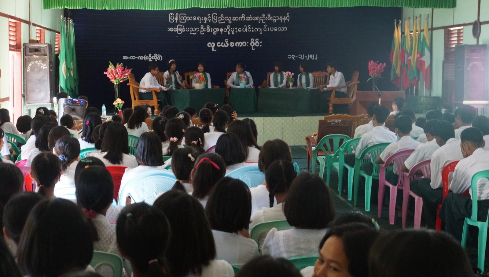 အခမ်းအနားသို့ ဒုတိယမြို့နယ်ပညာရေးမှူး၊ ကျောင်းအုပ်ဆရာမကြီးနှင့် ဆရာ/ဆရာမများ၊ ပြန်ကြားရေးနှင့်ပြည်သူ့ဆက်ဆံရေးဦးစီးဌာနမှ ဦးစီးအရာရှိနှင့် ဝန်ထမ်းများ၊ ကျောင်းသား၊ ကျောင်းသူများ စုစုပေါင်း(၂၁၀)ဦး တက်ရောက်ခဲ့ကြပြီး ဆွေးနွေးသူများအား အမှတ်တရလက်ဆောင်ပစ္စည်းများ ပေးအပ်ခဲ့သည်။