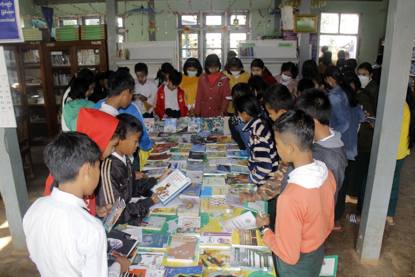 ထို့နောက် ဟောပြောပွဲ တက်ရောက်လာကြသော အမှတ်(၃)ရပ်ကွက်အခြေခံပညာ အလယ်တန်းကျောင်းခွဲမှ ဆရာ/ဆရာမများနှင့် ကျောင်းသား/ကျောင်းသူများက ပြည်သူ့ စာကြည့်တိုက်အတွင်း ခင်းကျင်းပြသထားသော လွတ်လပ်ရေးနေ့အထိမ်းအမှတ် နံရံကပ် စာစောင်နှင့် အခြားအသိပညာပေး နံရံကပ်စာစောင်များကို လှည့်လည်ကြည့်ရှုအားပေးခဲ့ကြောင်း သိရသည်။