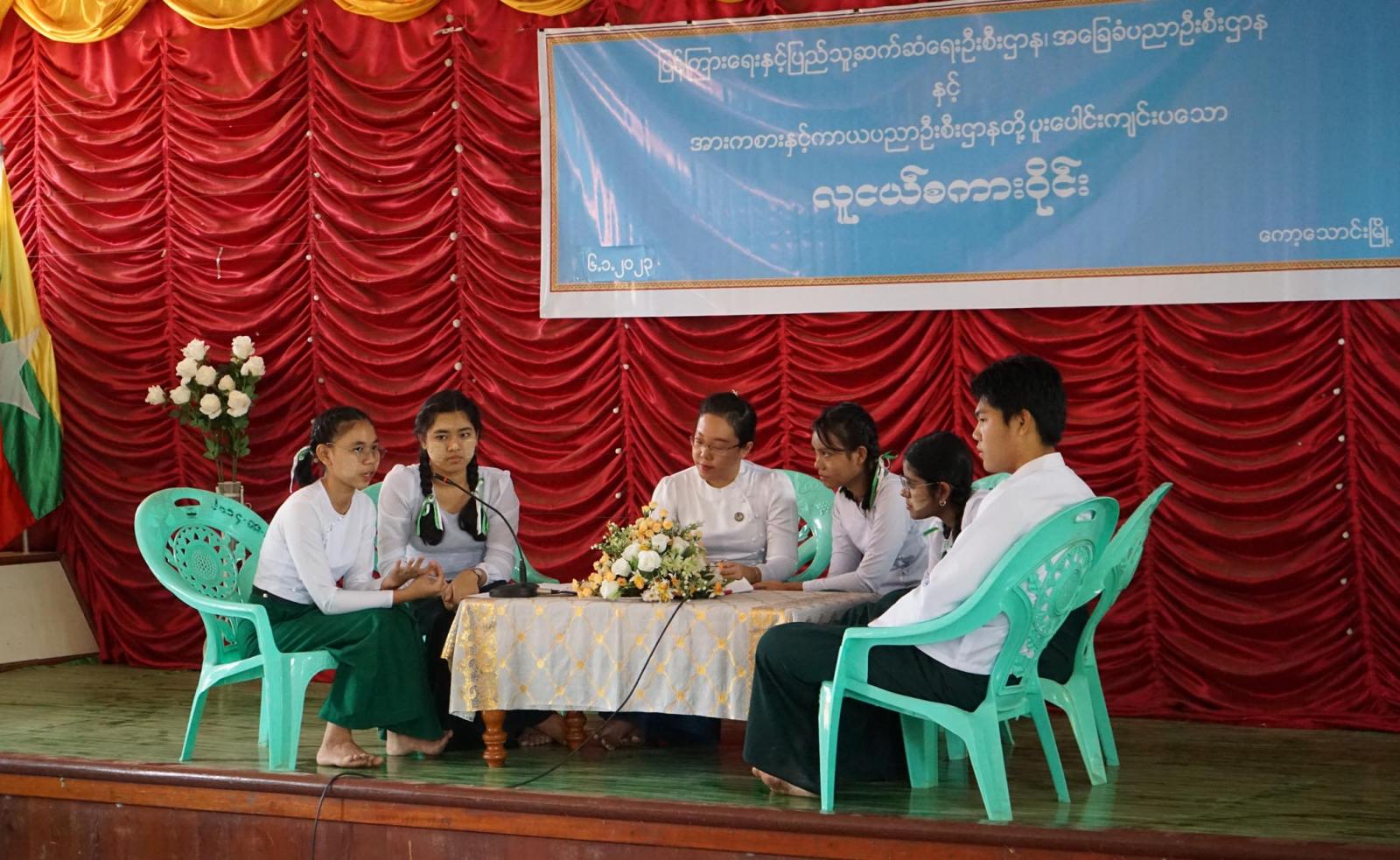 အဆိုပါစကားဝိုင်းဆွေးနွေးပွဲတွင် လူငယ်နှင့်ကိုယ်ကျင့်တရား၊ လူတိုင်းသည် ကျန်းမာရေးကို ဂရုစိုက်သင့်သည်၊ လူငယ်နှင့်အနာဂတ်ရည်မှန်းချက်ပန်းတိုင်၊ လူငယ်နှင့်အနာဂတ်၊ လူငယ်နှင့်စာပေ စသည့်ခေါင်းစဉ်များဖြင့် အထက်တန်းကျောင်းသား၊ ကျောင်းသူ(၅)ဦး ပါဝင်ဆွေးနွေးခဲ့ကြပြီး တက်ရောက်ကြသည့် ဆရာ/ဆရာမများ ကျောင်းသား/ကျောင်းသူများက စကားဝိုင်းအတွင်း ဝင်ရောက် မေးမြန်းအပြန်အလှန်ဆွေးနွေးခဲ့ကြ ကြောင်း သတင်းရရှိသည်။
