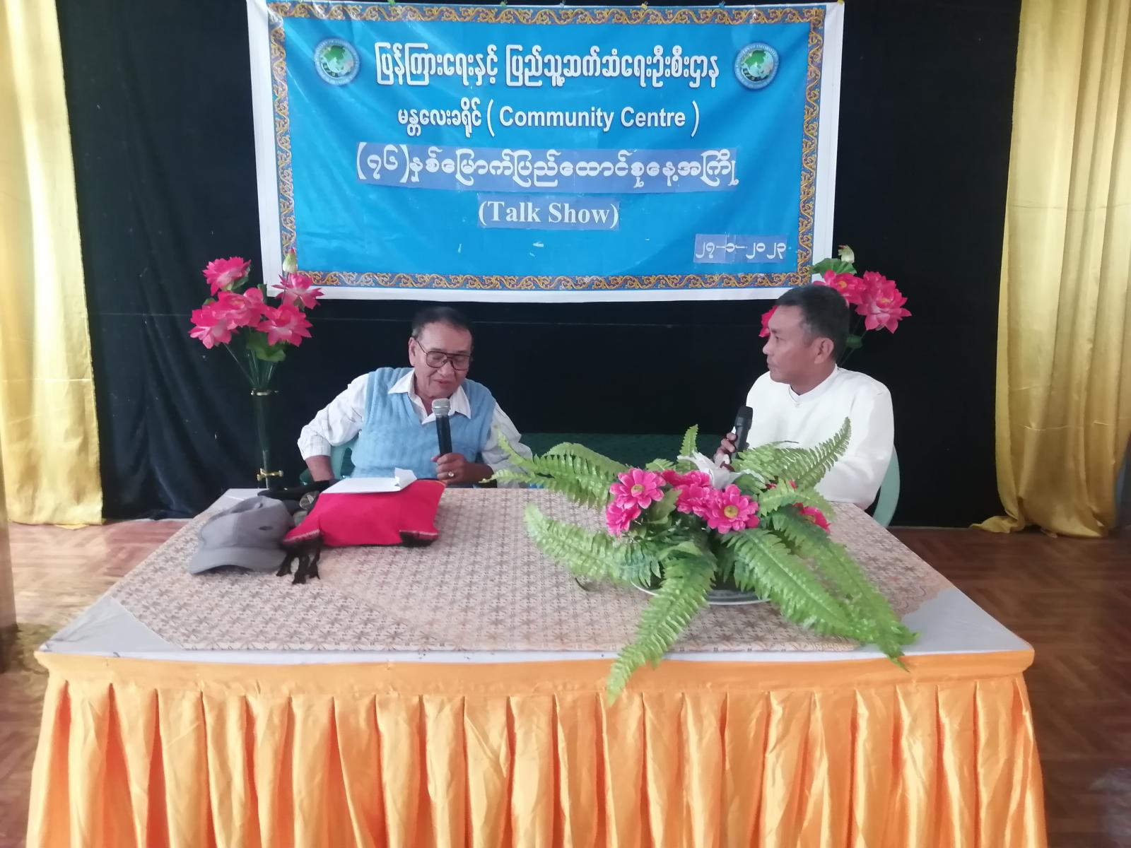 မန္တလေးခရိုင် လူထုအခြေပြုဗဟိုဌာနတွင် (၇၆)နှစ်မြောက် ပြည်ထောင်စုနေ့အကြို အသိပညာပေးဆွေးနွေးပွဲ (Talk Show)ကို ယနေ့မွန်းလွဲ(၁)နာရီကကျင်းပပြုလုပ်ခဲ့သည်။
