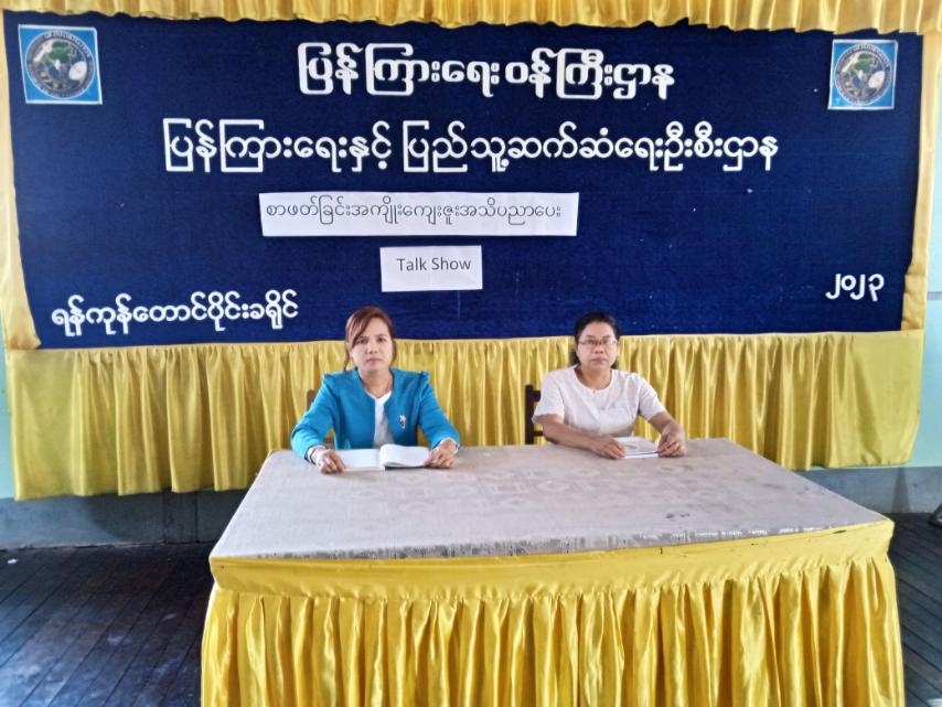ရန်ကုန်တိုင်းဒေသကြီး၊ ရန်ကုန်တောင်ပိုင်းခရိုင်(သန်လျင်)မြို့နယ် ပြန်ကြားရေးနှင့်ပြည်သူ့ဆက်ဆံရေးဦးစီးဌာန(Community Centre)ခန်းမ၌ ယနေ့နံနက်(၁၁)နာရီအချိန်က စာဖတ်ခြင်း အကျိုးကျေးဇူးအသိပညာပေးဆွေးနွေးပွဲ TalkShow ကျင်းပခဲ့ကြောင်း သိရသည်။