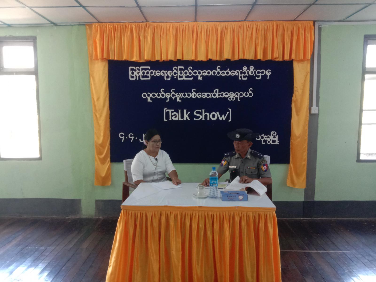 ရှေးဦးစွာ ပြန်ကြားရေးနှင့်ပြည်သူ့ဆက်ဆံရေးဦးစီးဌာနမှ ဦးစီးအရာရှိ ဒေါ်တင်တင်ထွေးက မူးယစ်ဆေးဝါးဖြစ်ပေါ်လာပုံ၊ မူးယစ်ဆေးဝါးသုံးစွဲမိပါက ဖြစ်ပေါ်လာမည့် ဆိုးကျိုးများ၊ မူးယစ်ဆေးဝါး လက်၀ယ်ထားရှိခြင်းနှင့်သုံးစွဲမိပါက ကျရောက်မည့်ပြစ်မှုပြစ်ဒဏ် အကြောင်းအရာများကို မေးမြန်းဆွေးနွေးခဲ့သည်။