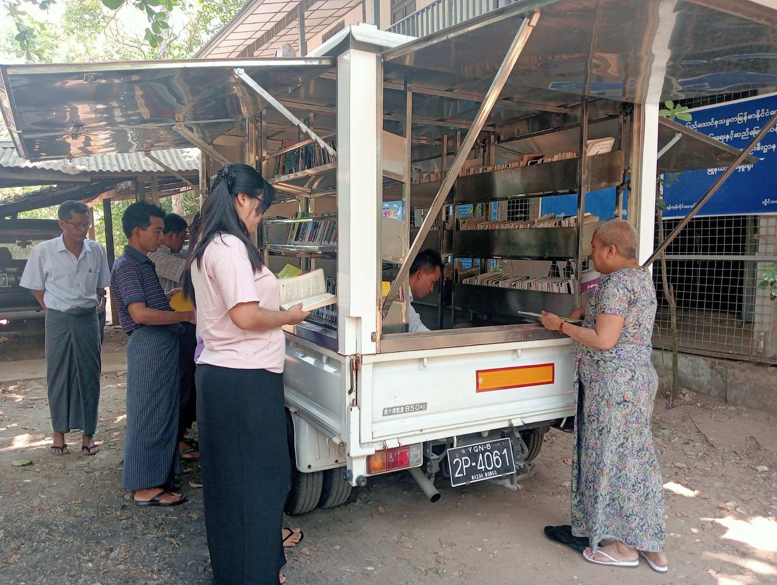 ရန်ကုန်တိုင်းဒေသကြီး၊ အင်းစိန်ခရိုင်၊ အင်းစိန်မြို့နယ်၌ ပြည်သူများနှင့်ဝန်ထမ်းများ စာပေမှရရှိသည့် ဗဟုသုတများစွာ ရရှိစေရန်နှင့် စာပေကို လက်ဝယ်အရောက်ဖတ်ရှုနိုင်စေရန်ရည်ရွယ်၍ ရွေ့လျားစာကြည့်တိုက်မော်တော်ယာဥ်ဖြင့် စာအုပ်များ ငှားရမ်းပေးခြင်းကို ယမန်နေ့နံနက် (၁၀) နာရီအချိန်က အင်းစိန်မြို့နယ်၊ မွေးမြူရေးနှင့်ကုသရေးဦးစီးဌာနရုံးသို့ သွားရောက် ငှားရမ်းပေးသည်။